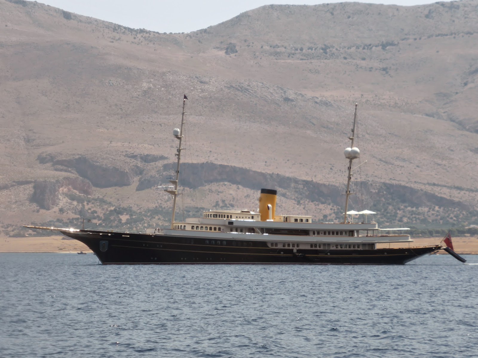 Next day George took Doug and I ashore, and we caught an open-topped red hop-on, hop-off tourist bus to Taormina. The guide / ticket-seller told us the return time and a couple of hours later we caught the red bus back, but half way through the trip we realised it was a similar looking bus but not the same one we’d caught before, and in fact operated by a different company. Fortunately the guide was engrossed in answering questions from another passenger and never asked to see our tickets, so we got back without any problem.