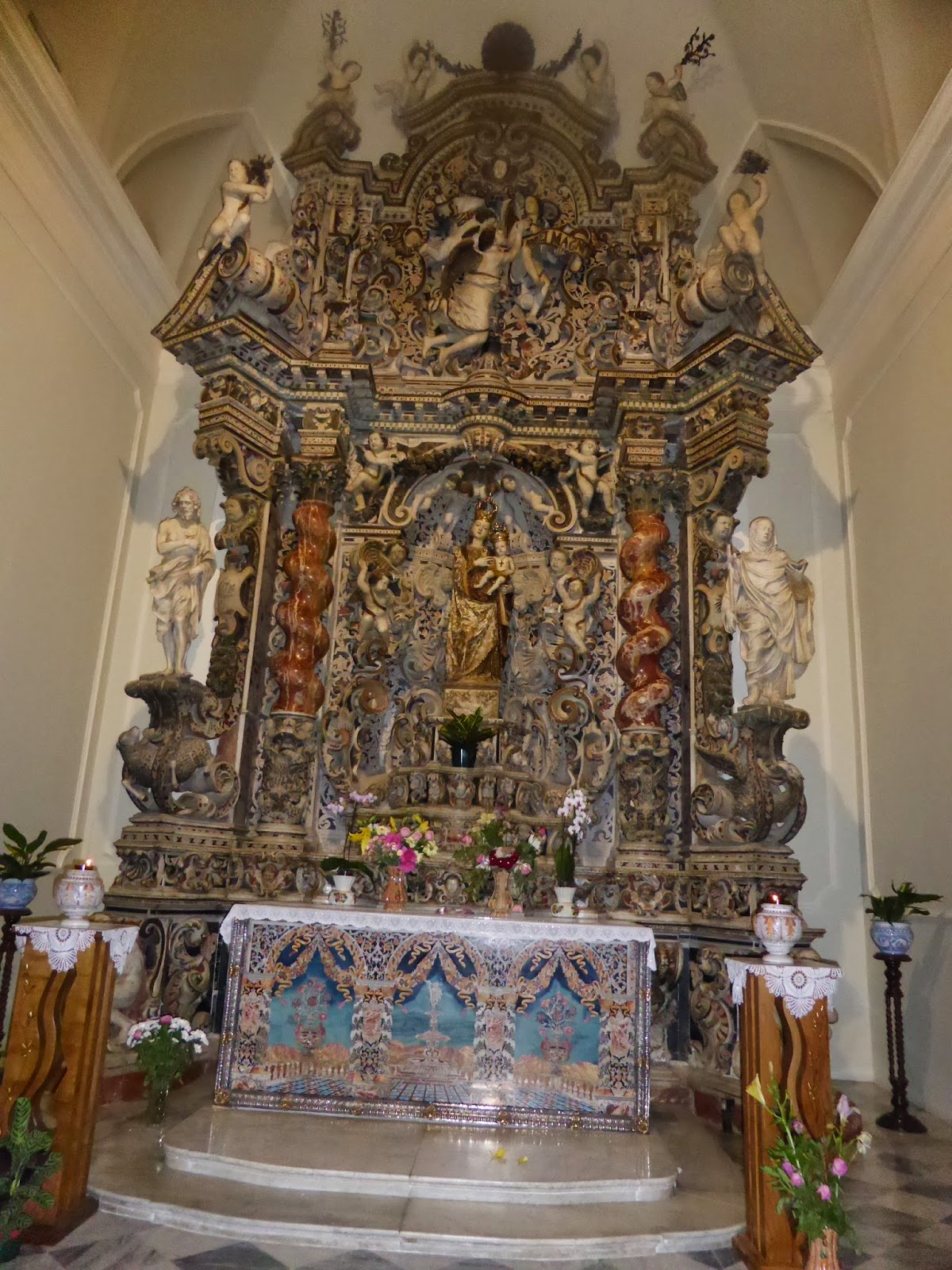 Doug has a big interest in cuisine so it was a must to hire a car and take him to see Catania’s La Pescherie – the fishmarket (as described in an earlier posting). As Lonely Planet says, this is the best show in town and not to be missed – anybody who thinks “the Med is fished out” needs to visit this huge market brimming with exotic fish species.