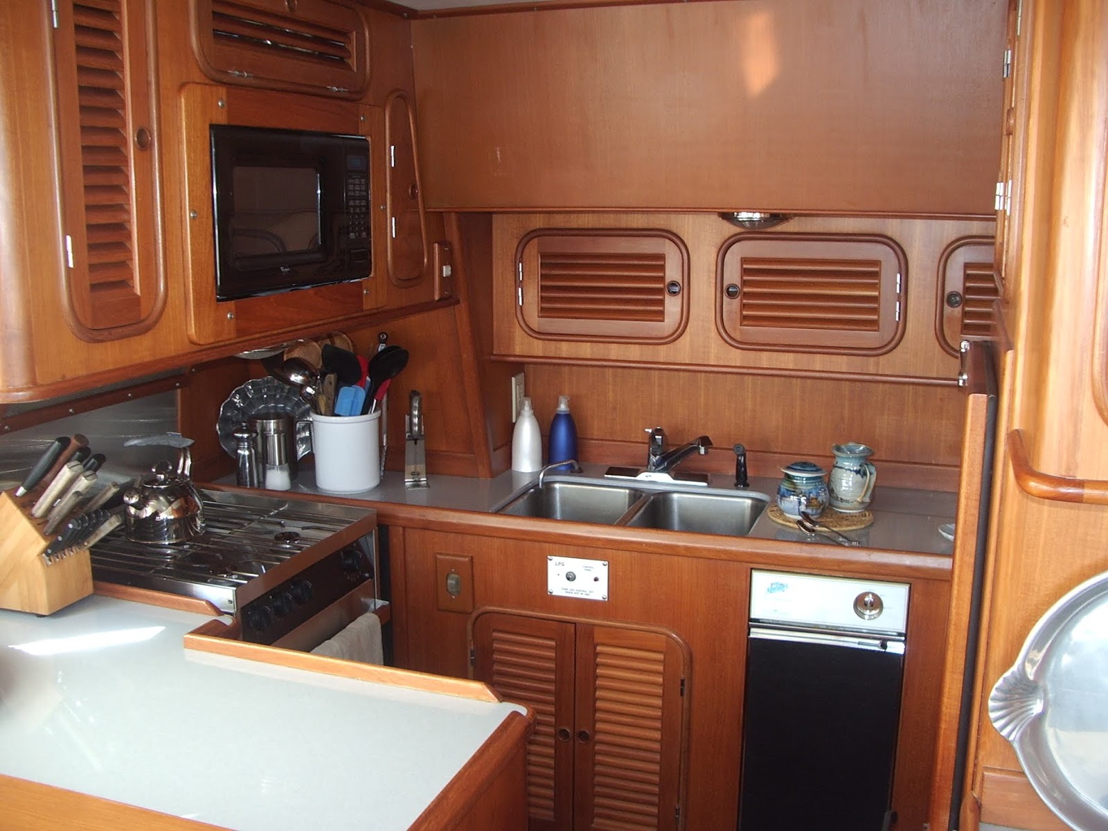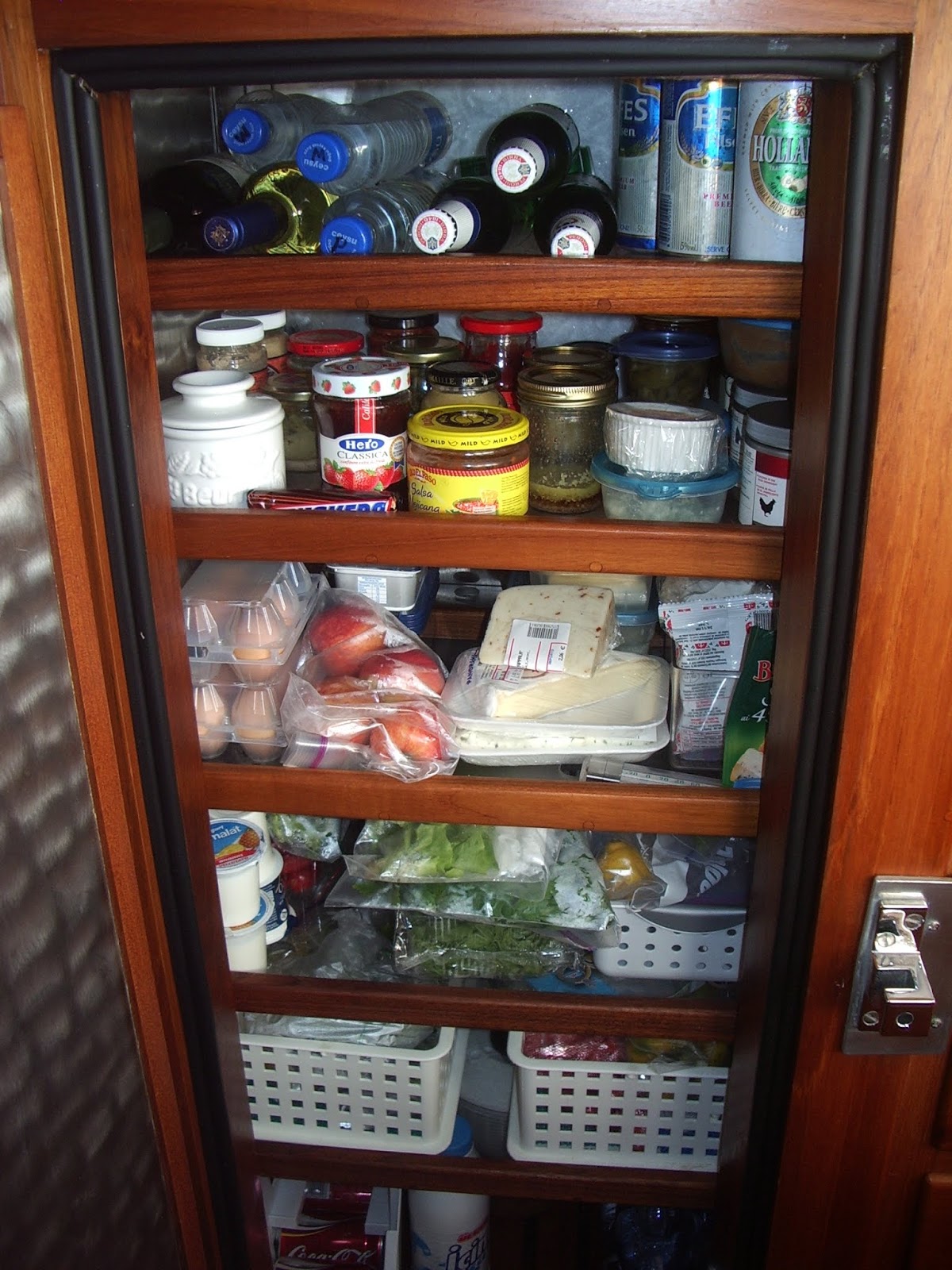 A stove with at least three burners is desirable together with a medium sized oven. We prefer lpg to electric so that we don’t need to run a generator to use the stove. Diane says our microwave is nice to have, but not necessary.