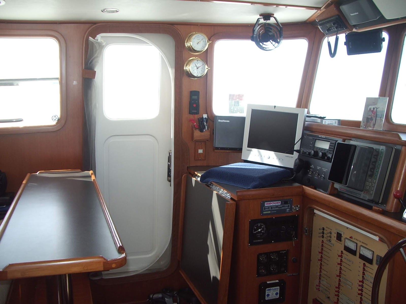 Envoy’s pilothouse has all the manuals needed to run and maintain the vessel