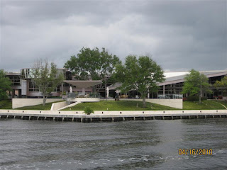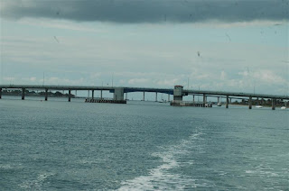 Titusville is the closest town to the KennedySpaceCenter and many cruisers will watch shuttle launches and landings from there. As we progressed north we began to hear radio chatter that Discovery had not landed earlier. It was about 9:30 and every boater was looking to the sky and listening. I was out on the bow straining both eyes and ears and of course, had the camera. After a few minutes Mark called out that Discovery was already on the ground. NOTHING! But we weren’t the only ones – by the chatter on the radio in our area no one heard or saw anything. I guess we were still a little too far south – “missed it by that much”. Later as we neared Titusville we were able to see the KennedySpaceCenter and the launch tower.