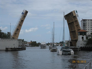 WE DID IT!!!! What you may ask??? Well, on Friday, we cruised from Ft.Lauderdale to Lake Park, FL – just north of Palm Beach. What we did was travel through 21 bridges, and only four were tall enough for us to go under without waiting or requesting an opening. Most bridges in this area are restricted so open on a schedule like on the hour and half hour or a quarter and three quarter past the hour. I did some studying and put together a possible schedule and Mark programmed the GPS to navigate to the next bridge. He adjusted our speed to get to the next bridge on time.