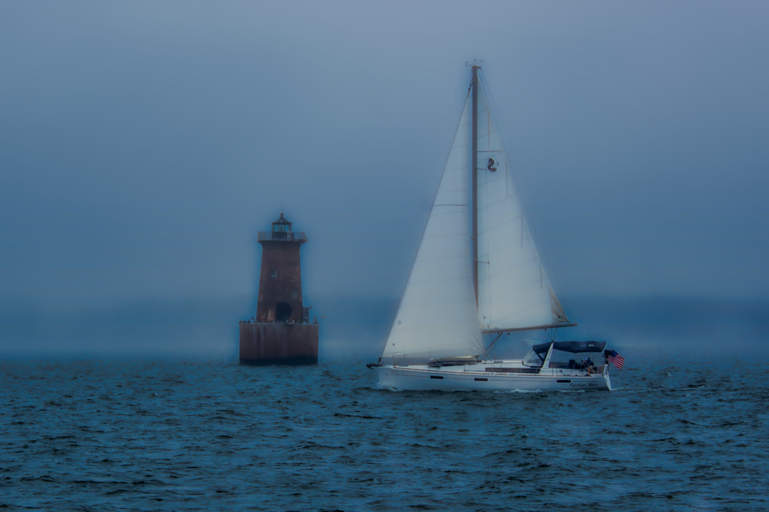 Waking early and going up top to put together a cup of coffee, I take a look out the window and see the winds have indeed stopped blowing. The cool temp and warm water has coalesced to paint this image of a foggy morning inside Solomons Island Harbor.
