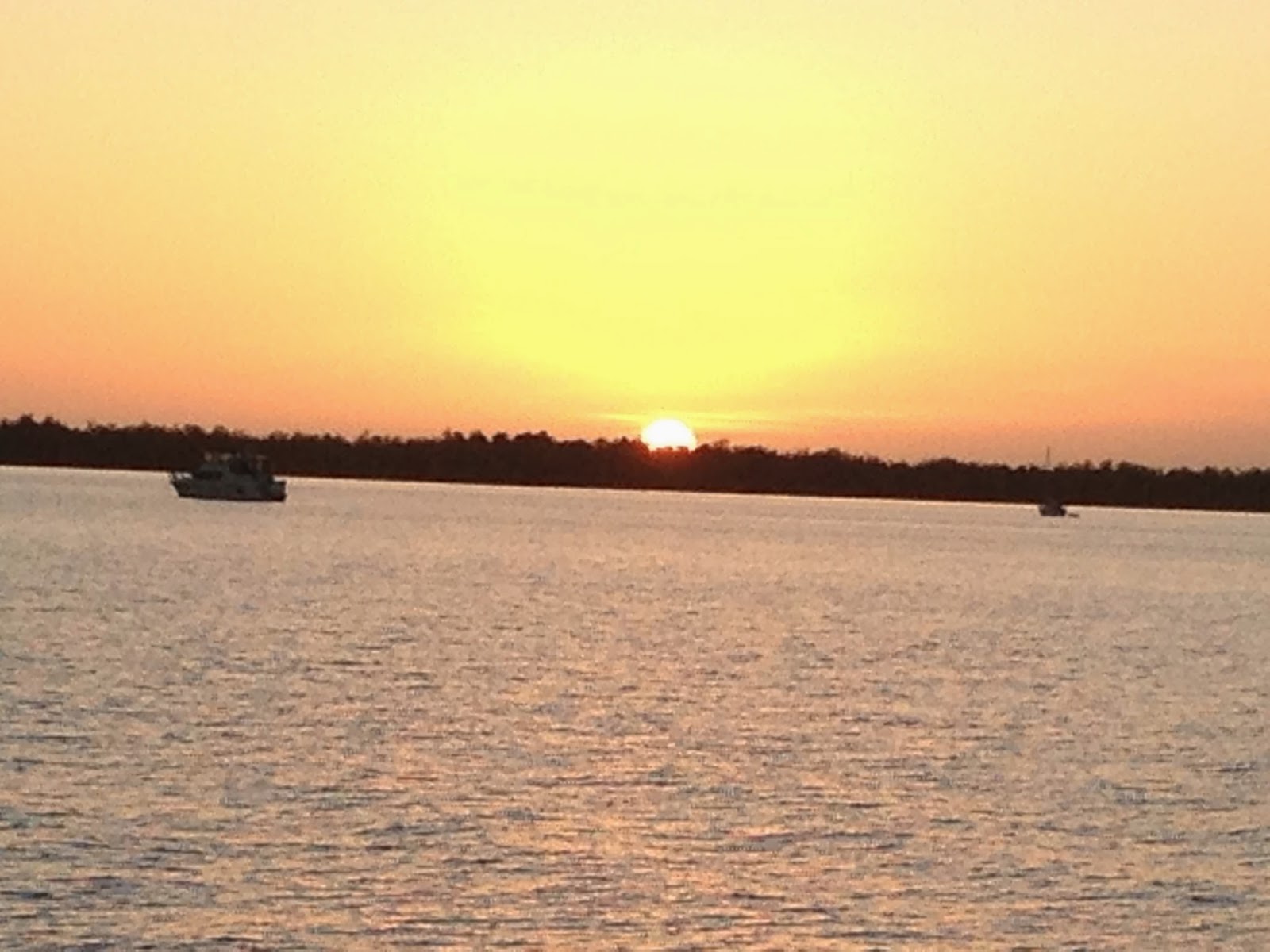 We got going about 10:30 on a rising tide. We did our usual thing with Keith taking the bridal off and pulling anchor and I did the driving. Normally I am OK with this arrangement but today was challenging. We had a 10 knot wind and there were several boats close by in the bay. This stresses me out some. I am working on it though and I did OK. It was windy on the ICW too with winds picking up to 11 to 12 knots. We only had 21miles to our stop for the night at San Carlos Bay, Ding Darling anchorage. We have been here before and like this anchorage. Our original plan was to anchor just off of St. James City (across the bay from Ding Darling) because we have never anchored there before. But the winds were coming out of the south, so Ding Darling was a better choice. We put 60′ of anchor rode out and had 5.5′ of water under the props. Winds calmed down by 18:00 for a pleasant evening sitting out on the front of the boat. My good friend, Nancy, called as we watched the sun set. It was good to hear from her.
