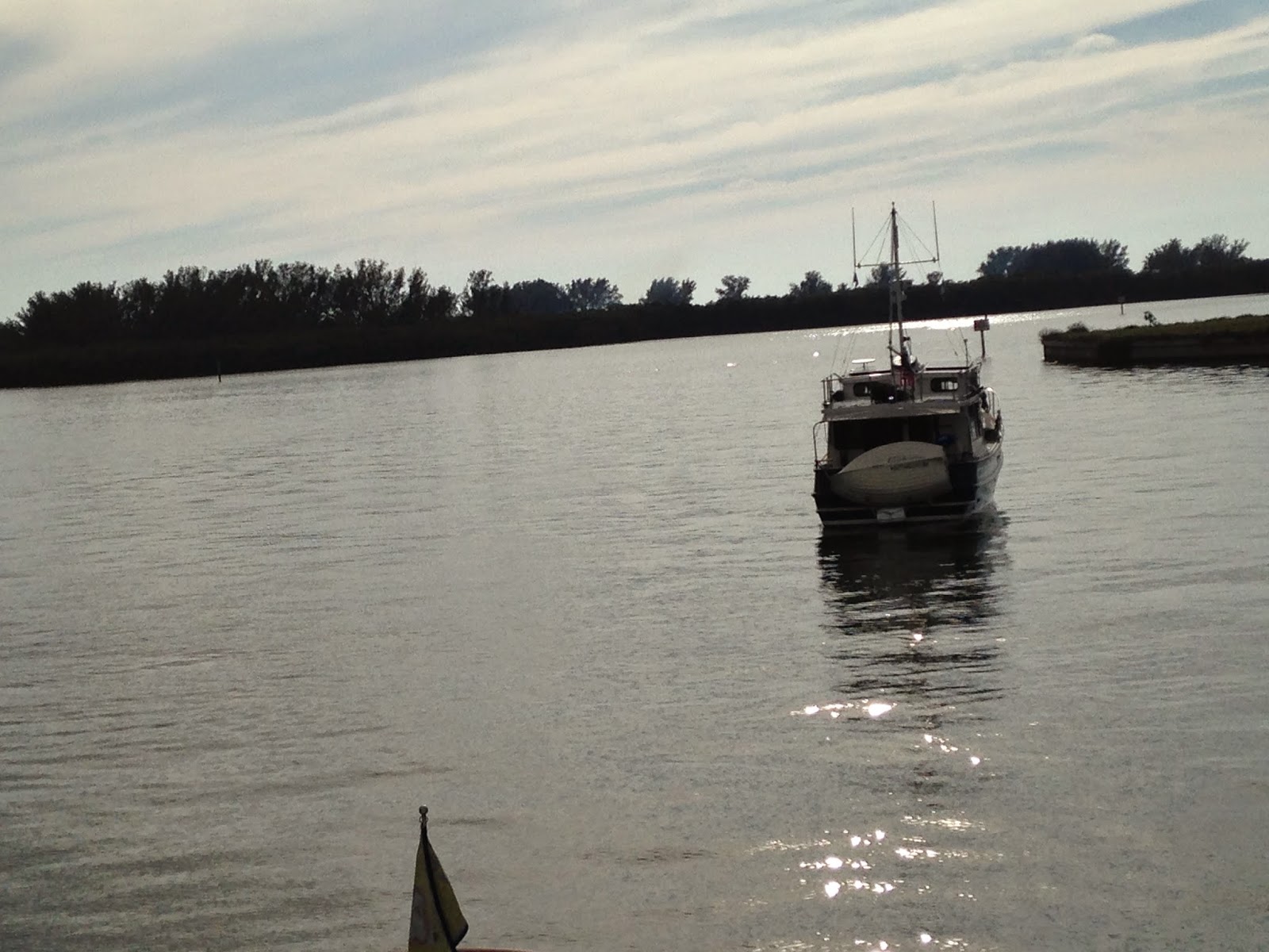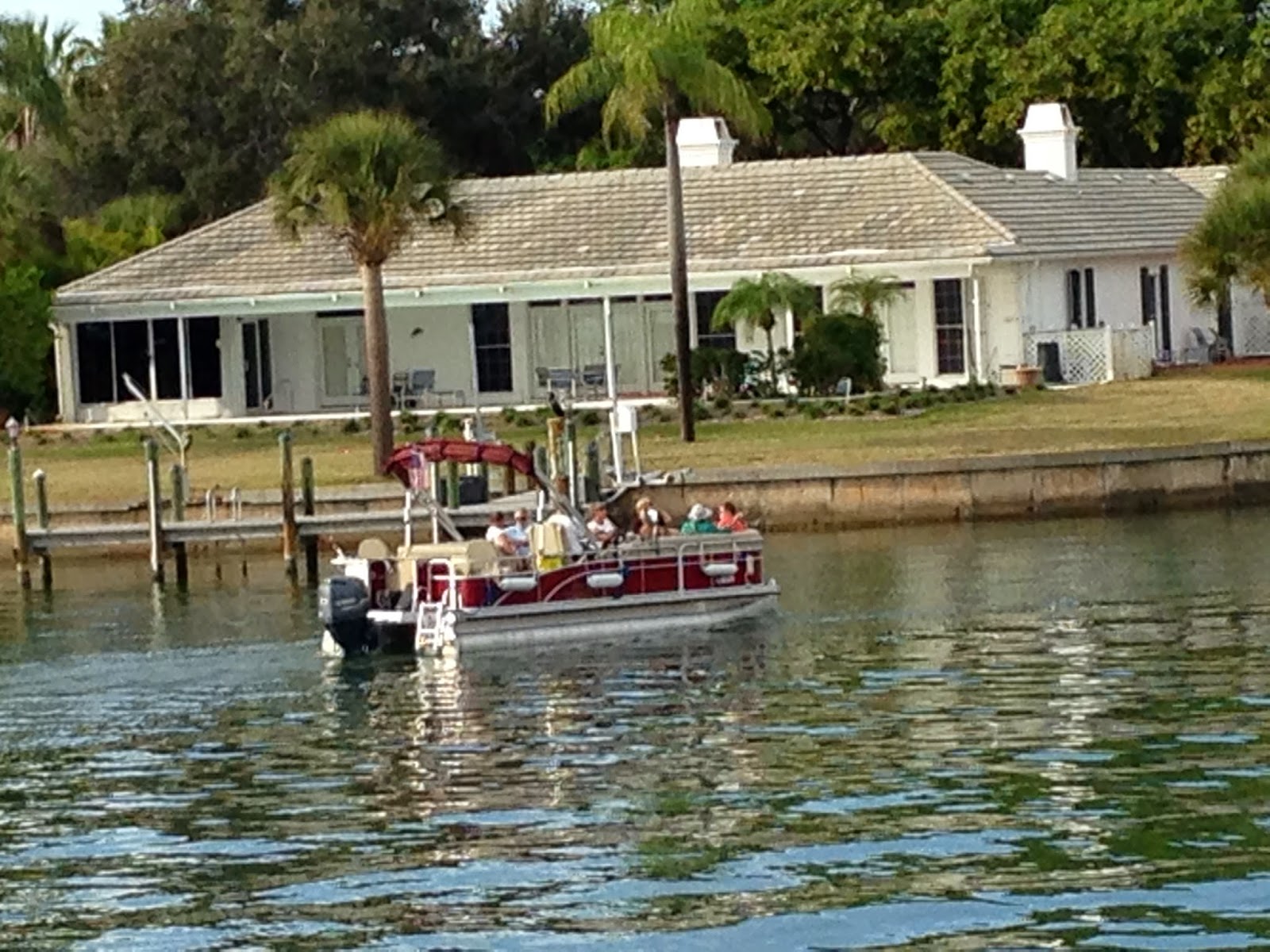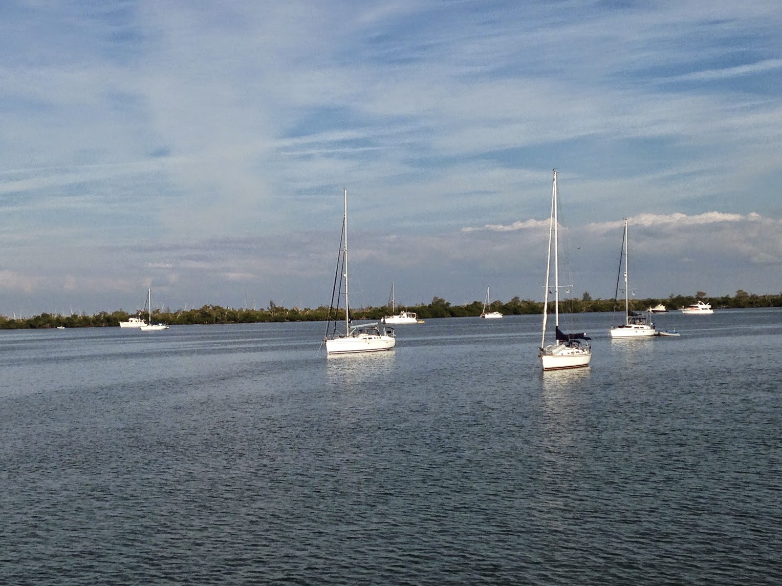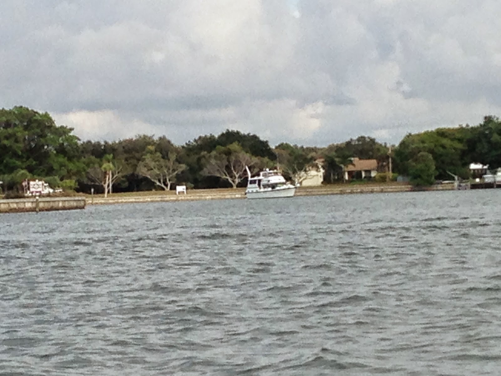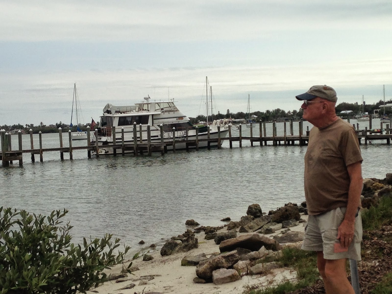 Tuesday, 12-30-2014: We only had about 12 miles to go for the day and it was a good thing because we woke up to dense fog and it hung around until about 11:00. We finally got going at 11:35 and had to wait 15 minutes for the Boca Grande Bridge to open at noon. This was our last bridge for a while. We crossed Charlotte Harbor/Boca Grande Pass right after the bridge. We started out with clear visibility but half way across it fogged in again; almost to zero visibility. The CO had to turn the radar on. Our anchorage for the next few day is at Cayo Costa State Park and it is a very popular anchorage; both for Loopers and local boaters. We always try to stop here. We put 50 feet of anchor rode out with 2.3′ of water under the props at low tide. After lunch, we put the dinghy back in the water and went for a ride over to the park.
