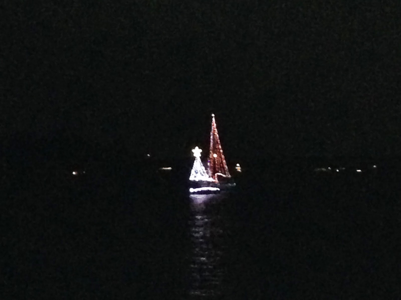 Saturday, December 13, 2014: It took a long time to bring the anchor up this morning. It was full of mud and took 20 minutes to bring it up. We got going about 07:35. Love this part of the trip as we see lots of dolphins. Got some good video of them jumping our wake but I can’t get the video to work on the blog.. We got to our tie up at Fort Walton Beach Free City dock by 13:30. Had a quick lunch and went to Public’s to pick up a few groceries. The city had their Christmas Boat parade tonight so we got to watch another one; tis the season.