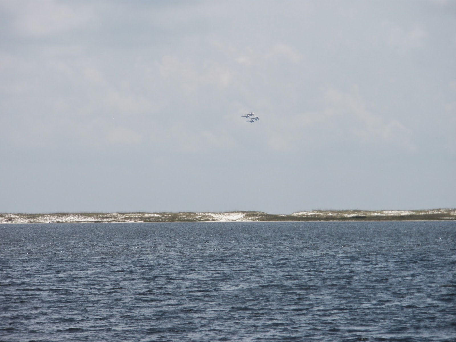 Our anchorage last night was nice after sun down but before that it was a very busy bayou with a lot of boaters and jet skier. Everyone stayed as long as they could to make the most of the last day of the holiday weekend. We got going again by 06:30 and had a beautiful day on the water with partly sunny skies and a nice breeze. The rest of Choctawatchee Bay was very calm and so were the Narrows. Santa Rosa Sound just had a light ripple and Pensacola Bay, the Big Lagoon, and Perdido Bay all had a light chop and this all made for a very pleasant day. We got to our anchorage at Ingram Bayou by Orange Beach, AL, by 13:30 and had a quiet afternoon and evening. While driving through the Pensacola area we got to watch the Blue Angles practice. I got some pictures but they do not do them justice; they were awesome. This is one of our favorite anchorages; always so peaceful and beautiful sun sets and sun rises.