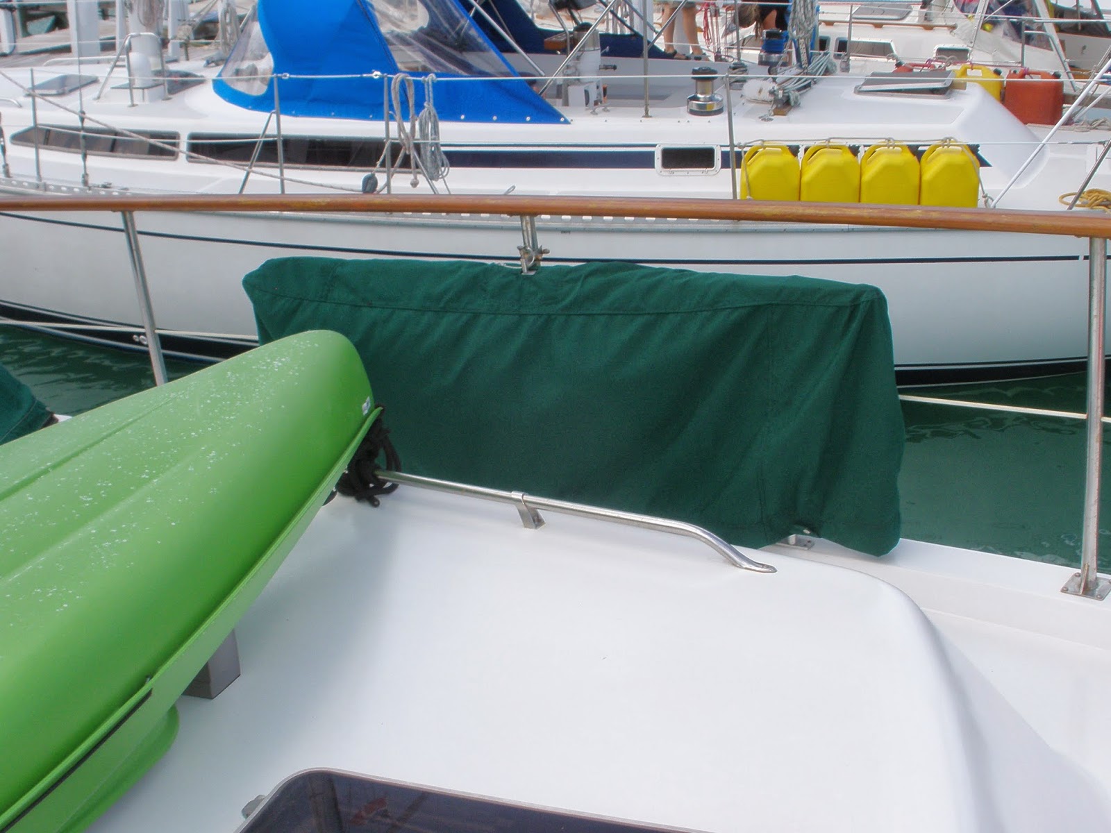 4-10-2014: They have short fingers here so we have room for the dinghy. The CO would rather have a longer finger.