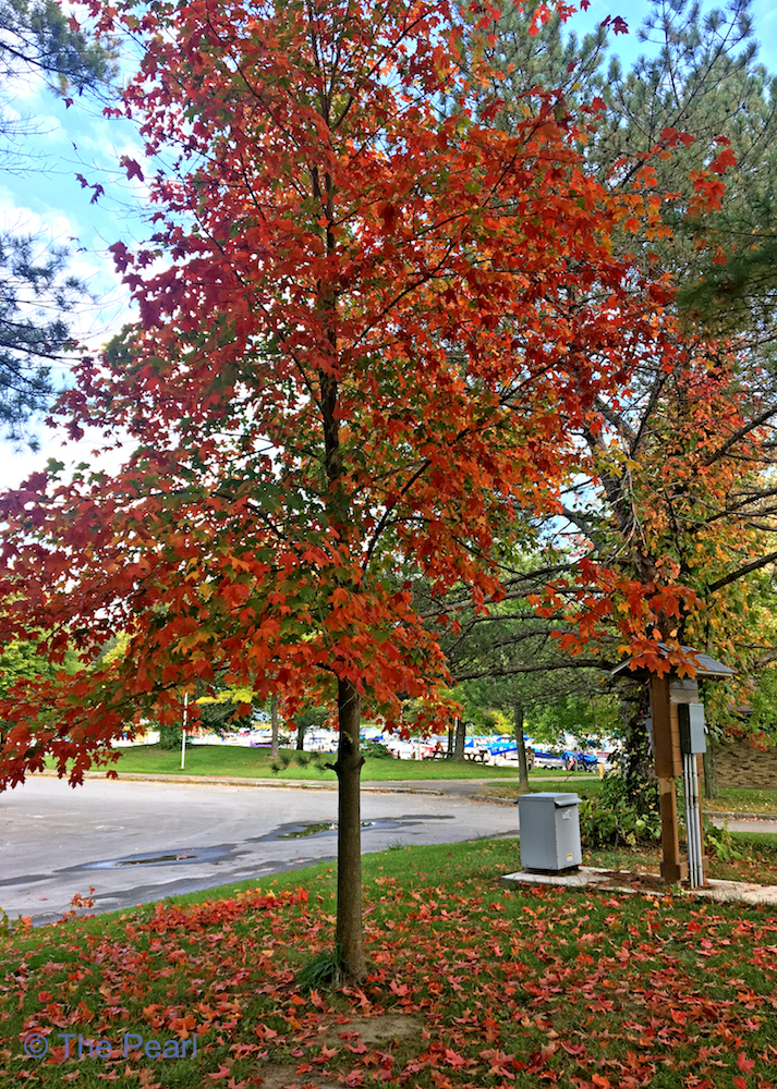 Chlorophyll, the pigment that gives plants their green color, is necessary for photosynthesizing light and creating sugars that feed the plant. Carotenoids assist in photosynthesis and are responsible for the oranges and yellows color. Anthocyanins, acts as a protective “sunscreen” for leaves; they produce the red colors we see in leaves. Anthocyanins are produced only during the fall when chlorophyll levels start to drop.