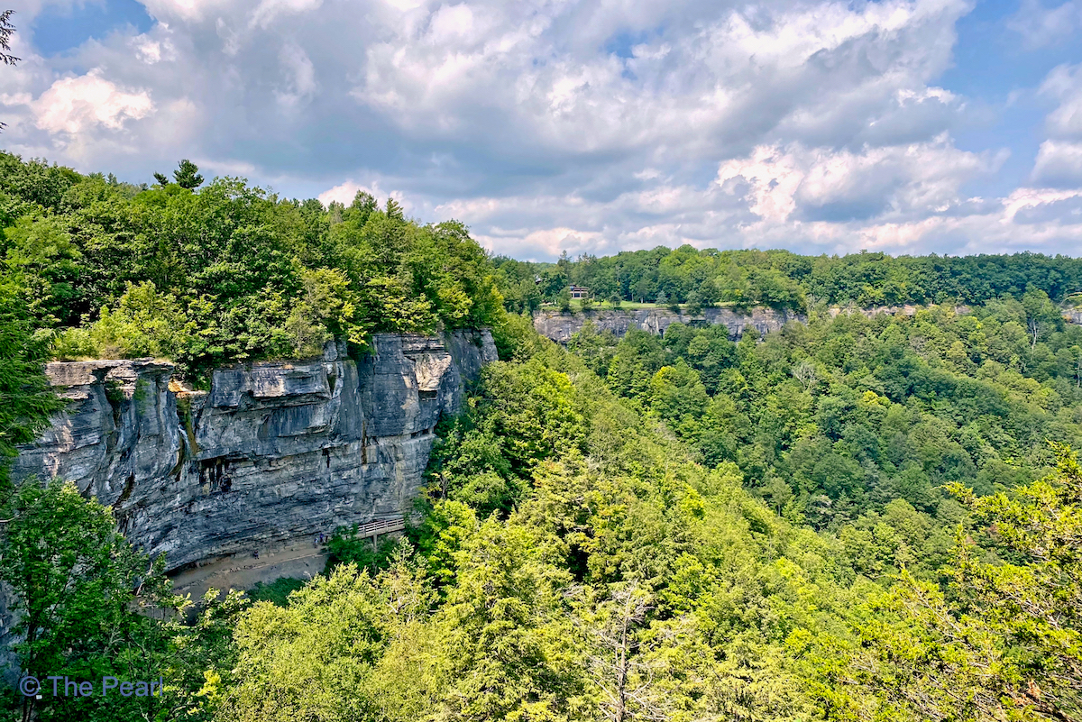 We’re on our way to Vermont to spend a week with family. Check in time at the house we’ve rented isn’t till 4:00, so we thought we’d check out the beautiful Thacher State Park on our way. The park is situated along the Helderberg Escarpment (The Great Ledge), 15 miles southwest of Albany. It provides a marvelous panorama view of the Hudson-Mohawk Valleys and the Adirondack and Green Mountains. We hiked the Indian Ladder Trail today.