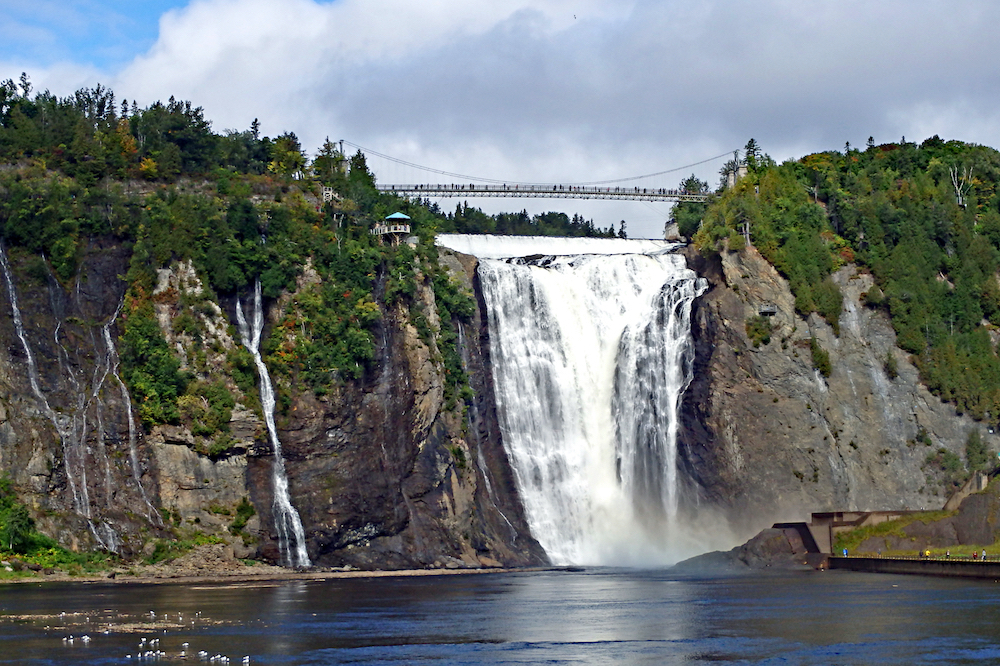 We left Québec City this morning and headed east to see Montmorency Falls (Chute Montmorency) and then the Île d’Orléans. This post will cover the falls…I’ll do another post for the island. The day started out dreary, windy and cool but began to clear as we enjoyed the falls.
