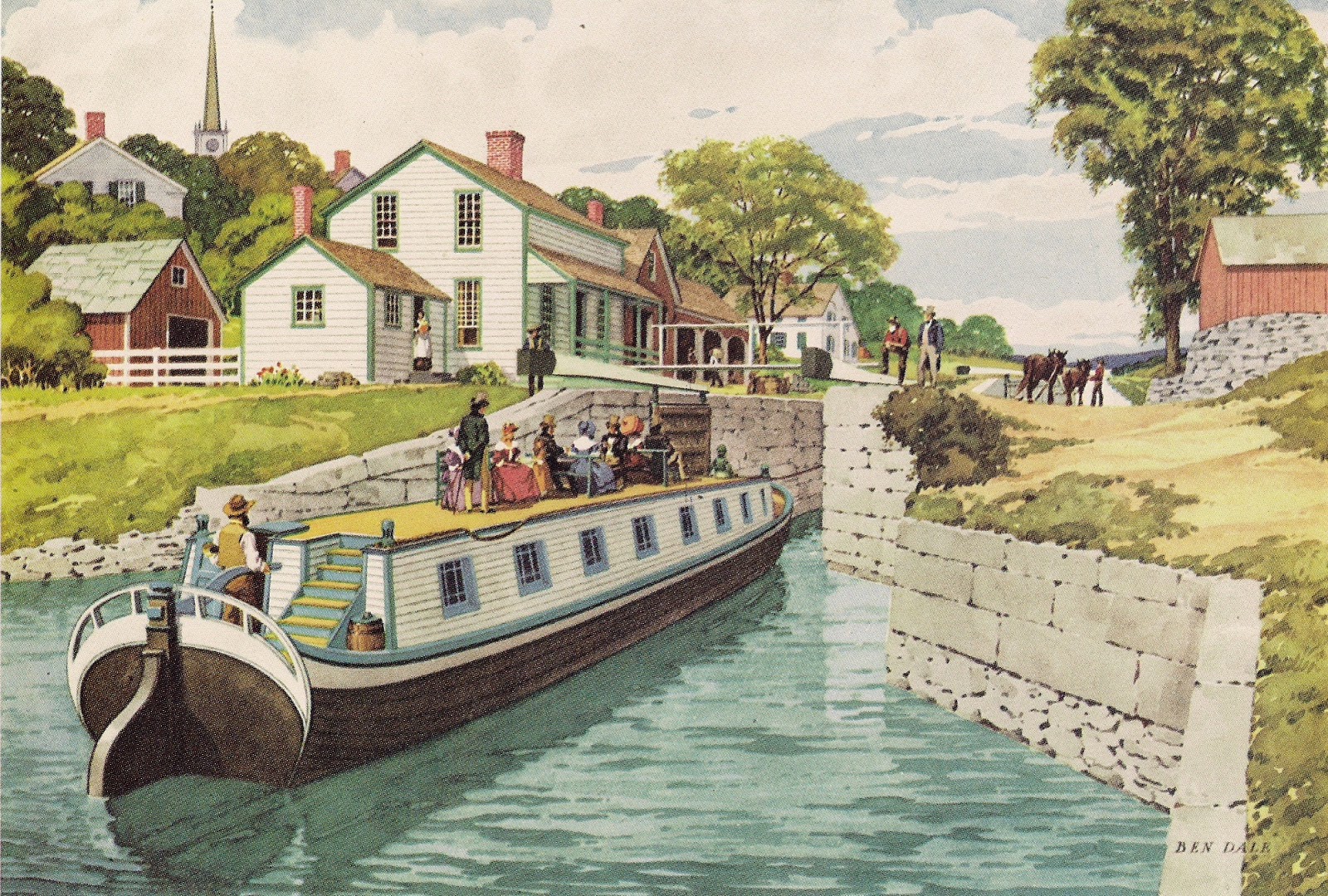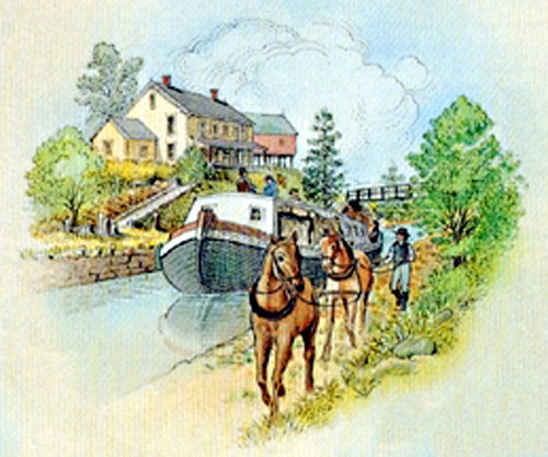 The first company to offer travel on the canal was the Canal Navigation Company. One could travel upon the canal for the small fee of four cents per mile which accounted for board and lodging. A tourist at that time would have paid approximately $2.80 per day. Horses would tow the boats while walking along a towpath paved next to the canal. The boats, held up to 30 people and would travel nearly 80 miles per day switching horses every six hours.