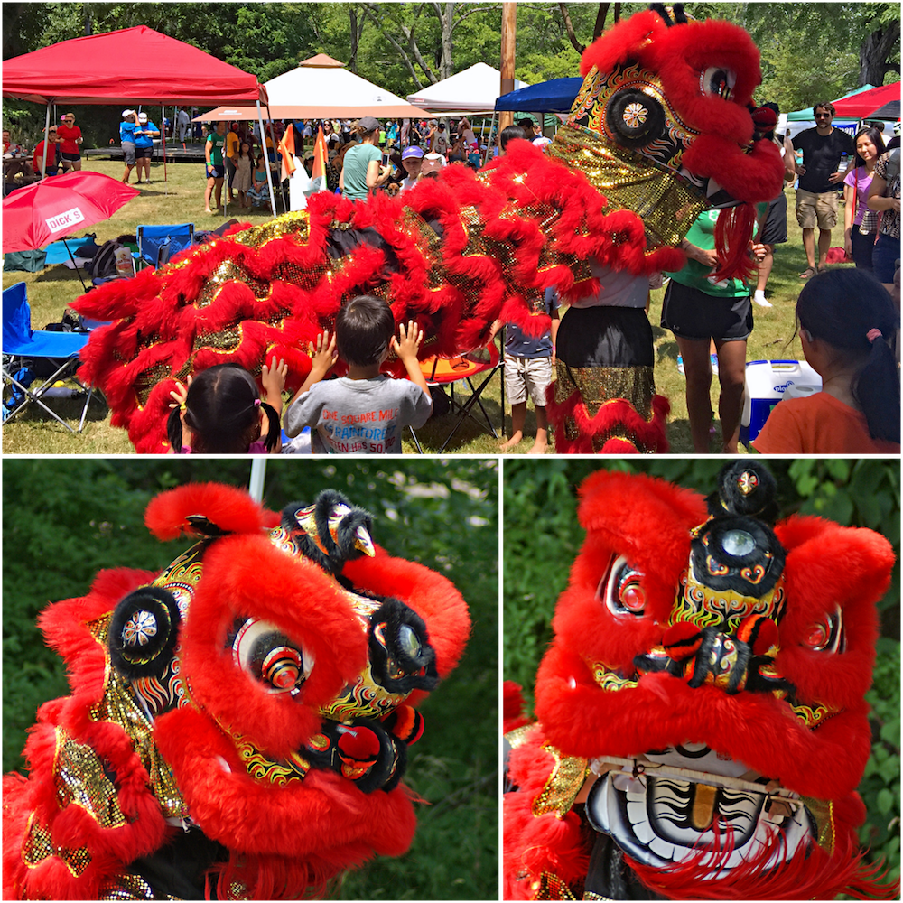 Today we went to the Finger Lake International Dragon Boat Festival, held at Taughannock Falls Park. Dragon boat races are one of the most typical traditions of Chinese Dragon Boat Festival which was traditional held on the fifth day of the fifth lunar month. They began in the Guangdong Province of China more than 2000 years ago. For more than 20 centuries the competition took place as a part of religious ceremonies and folk customs, but beginning in the 1970s dragon boat racing emerged as an international sport. But the history of dragon boats in competition reaches as far back as the same era as the original games of Olympia in ancient Greece.