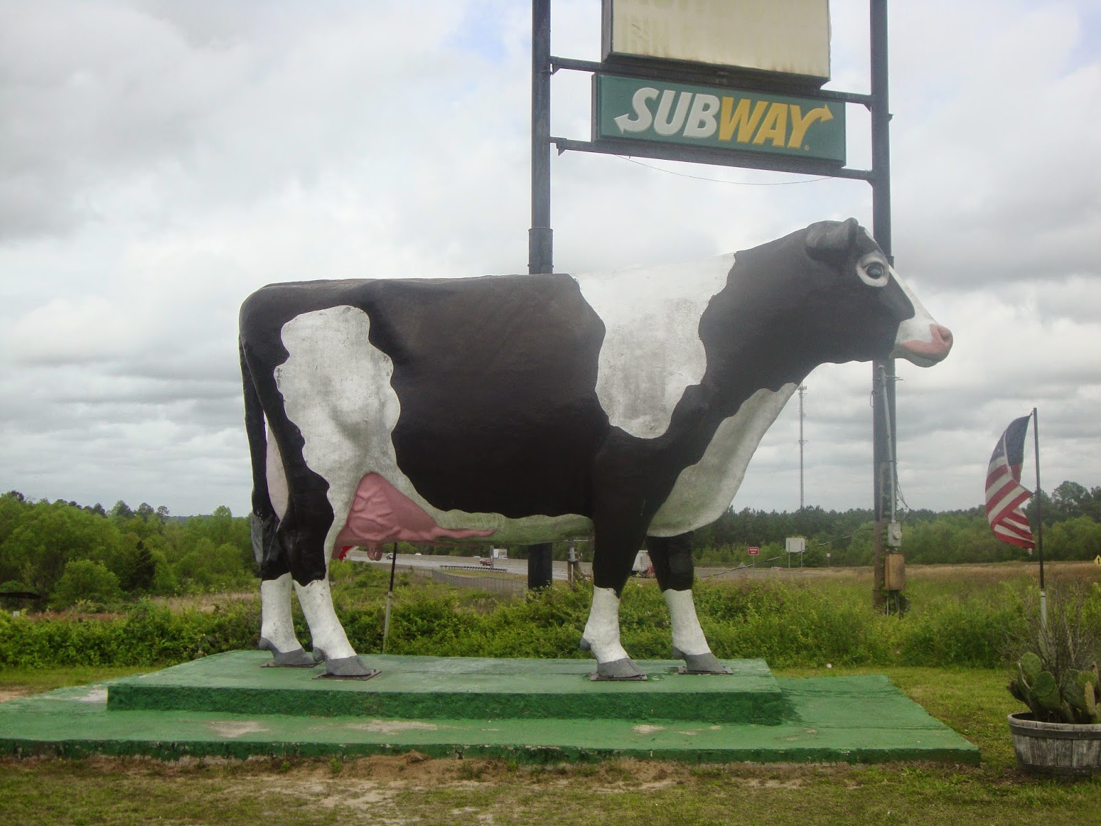 We found this cow in southern Georgia. The same place we ran into a guy smacking a pipe into the bed of his pick-up truck. Turns out he was killing a rattlesnake that was in the bed of the truck! No Lie!