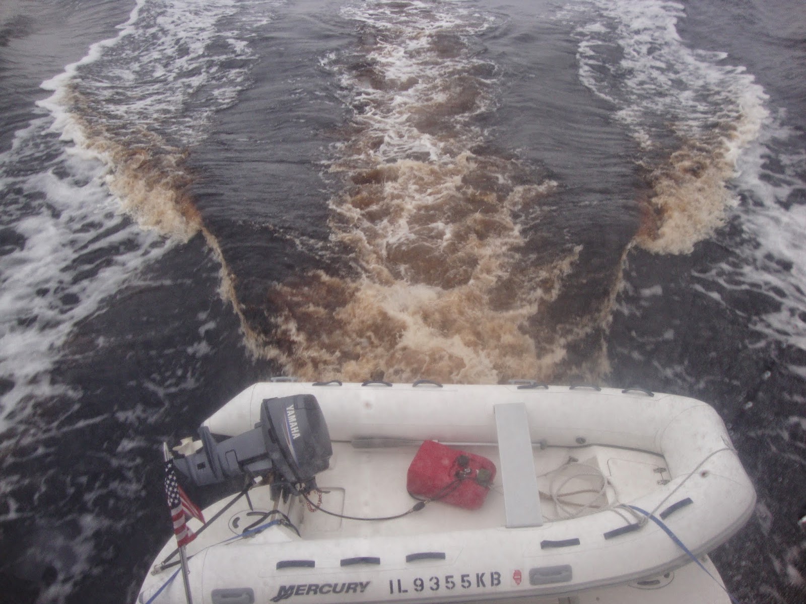 Once again the wisdom of this extra precaution paid off. About 20 miles from our destination the wind picked up and started coming at us from the port beam raising the waves to 3′ to 4′. Yuk! Not unsafe but certainly not comfortable. A little throttle play and we found a speed that didn’t beat up the boat, just threw water over the bridge periodically.