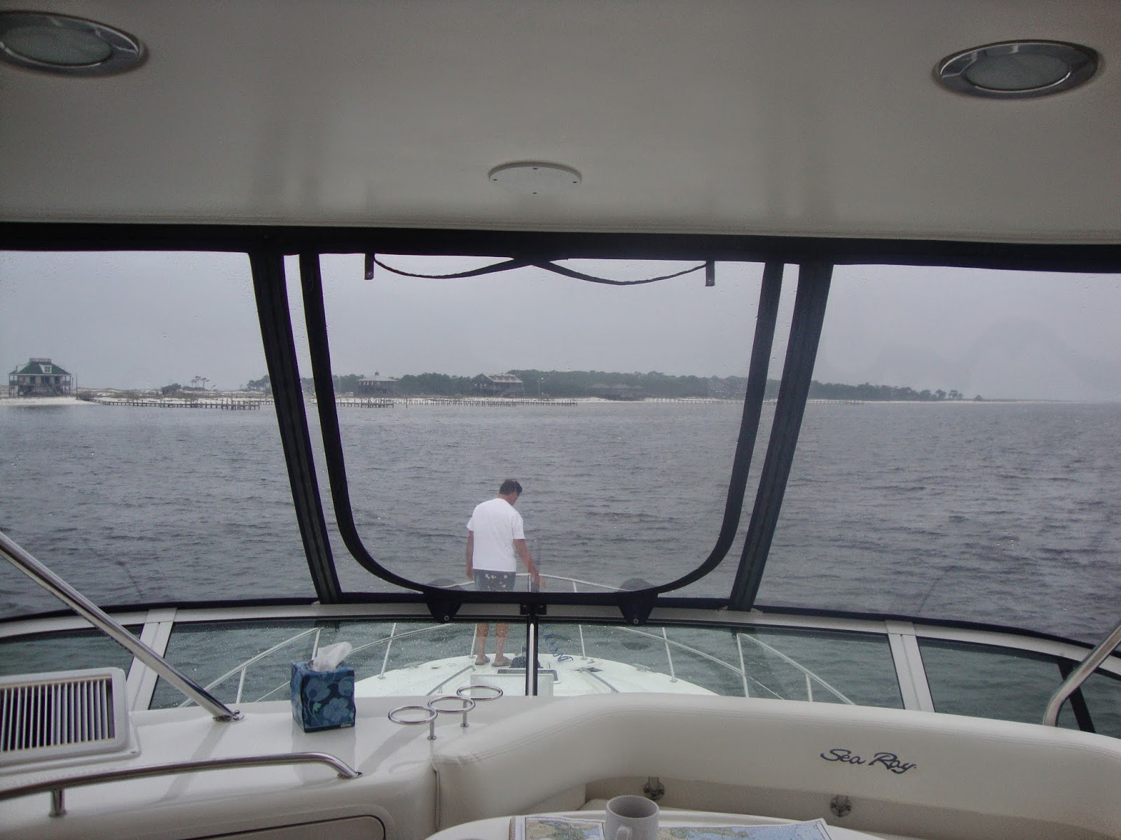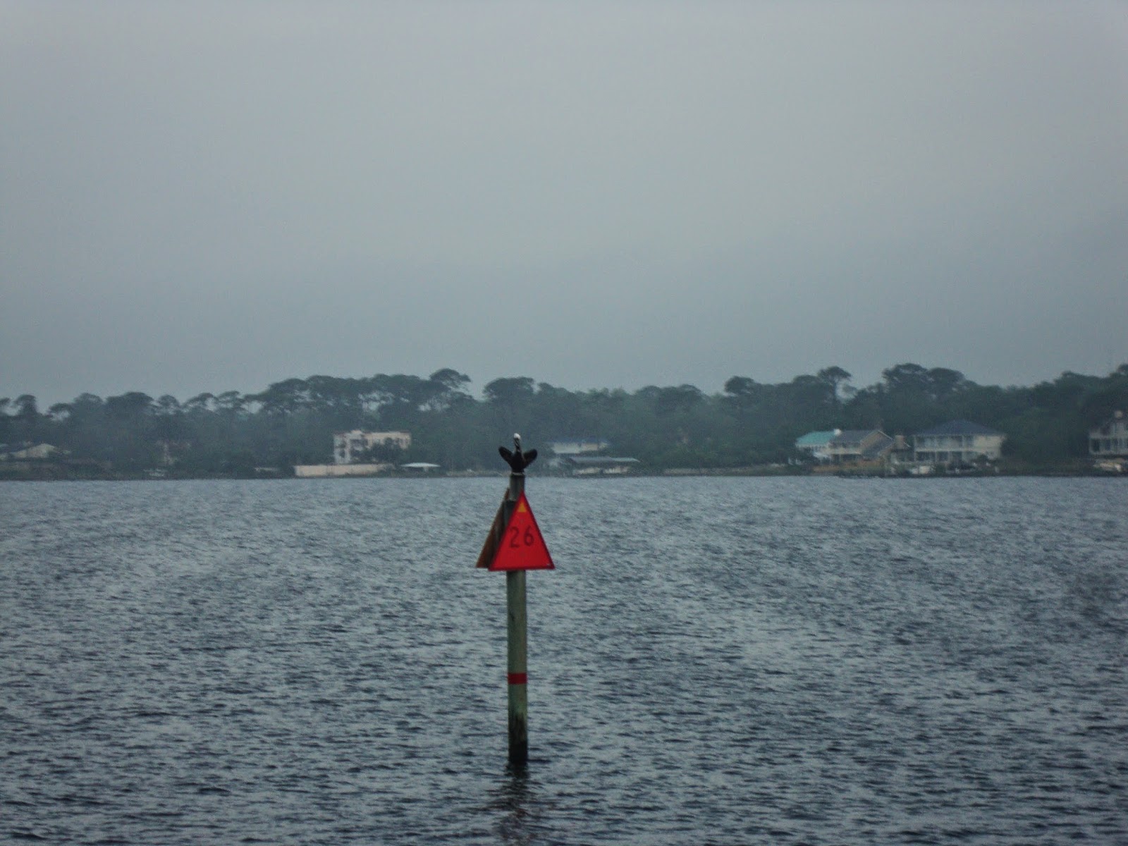 The forecast for Monday was for increasing winds throughout the morning and severe weather on Tuesday and Wednesday. With that in mind we got out of Dodge early and headed to Pensacola where we planned on riding out the storms. As we travelled the breeze picked up and the fog set in reducing visibility to 1/2 mile. Fortunately the plotter and the radar were working and we made it into Palafox Pier Marina in Pensacola by 10 am.