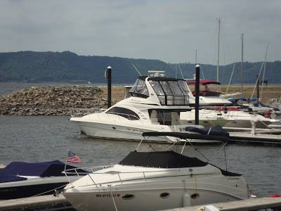 So we survived the rain and cooler temperatures tucked comfortably in our slip at Red Wing Marina with as much ice as we needed! The only real excitement we had was a southbound 12 barge tow that missed the turn just above us and spent the next half hour backing and repositioning himself so he could make the corner. Supposedly Red Wing Bend is one of the toughest corners on the river for the big guys.