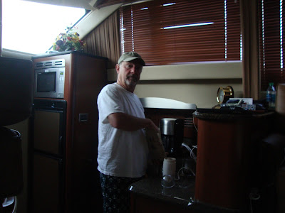 I thought it only fair to warn Gordy & Kathy of our intentions to check out their establishment that evening in hopes that they would be around. Well it was only a few minutes after we had pulled into Cary’s slip at the Yacht Club that Gordy showed up. He had been there once already to leave a splitter for us for the power receptacle and came back to see if we had made it in ok. We shot the bull for awhile before duty called and Gordy was off.