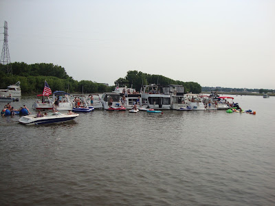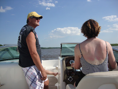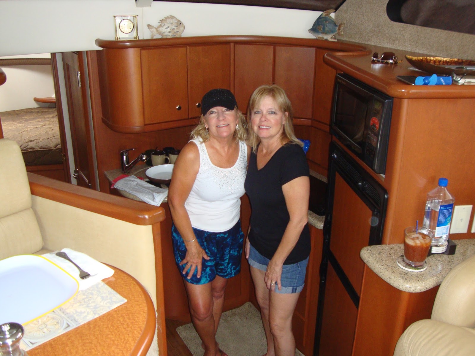 Well our first attempt at anchoring failed as we started to drag. The bottom here is a thin layer of sand covered by a lot of vegetation which makes it hard to get a good hold with the anchor. We retrieved the anchor and began to circle like a dog trying to find just the right spot. The water is clear enough to see the bottom so eventually we found a small area that appeared to be just sand. We set the hook with 7 to 1 scope and let it settle in before backing down on it to get a good set. It worked and for the longest while we sat and watched the other boaters as well as the approaching storm front which arrived earlier than predicted.