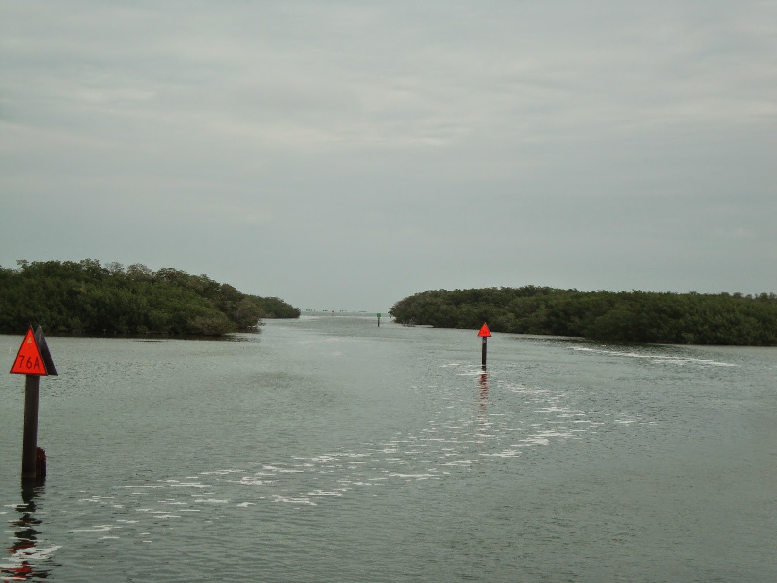 Now that we’re travelling the inside route shallow water is the norm and staying in the channel is a must. Even that is pretty skinny as we wind our way through the mangroves and patches of open water.