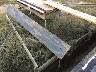 Obviously I’ve got to fix this, and before too long. The two planks near-death-experience arrangement will not survive the next spring tides without near constant mothering, so that’s less than a week. Oh goody.