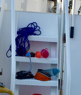 We like that Red Head is not a spit and polish kind of boat. She works well for the crew. What we didn’t anticipate was that one day she would have a Beverly Hillbillies kind of look. It’s not just the dog paraphernalia everywhere.