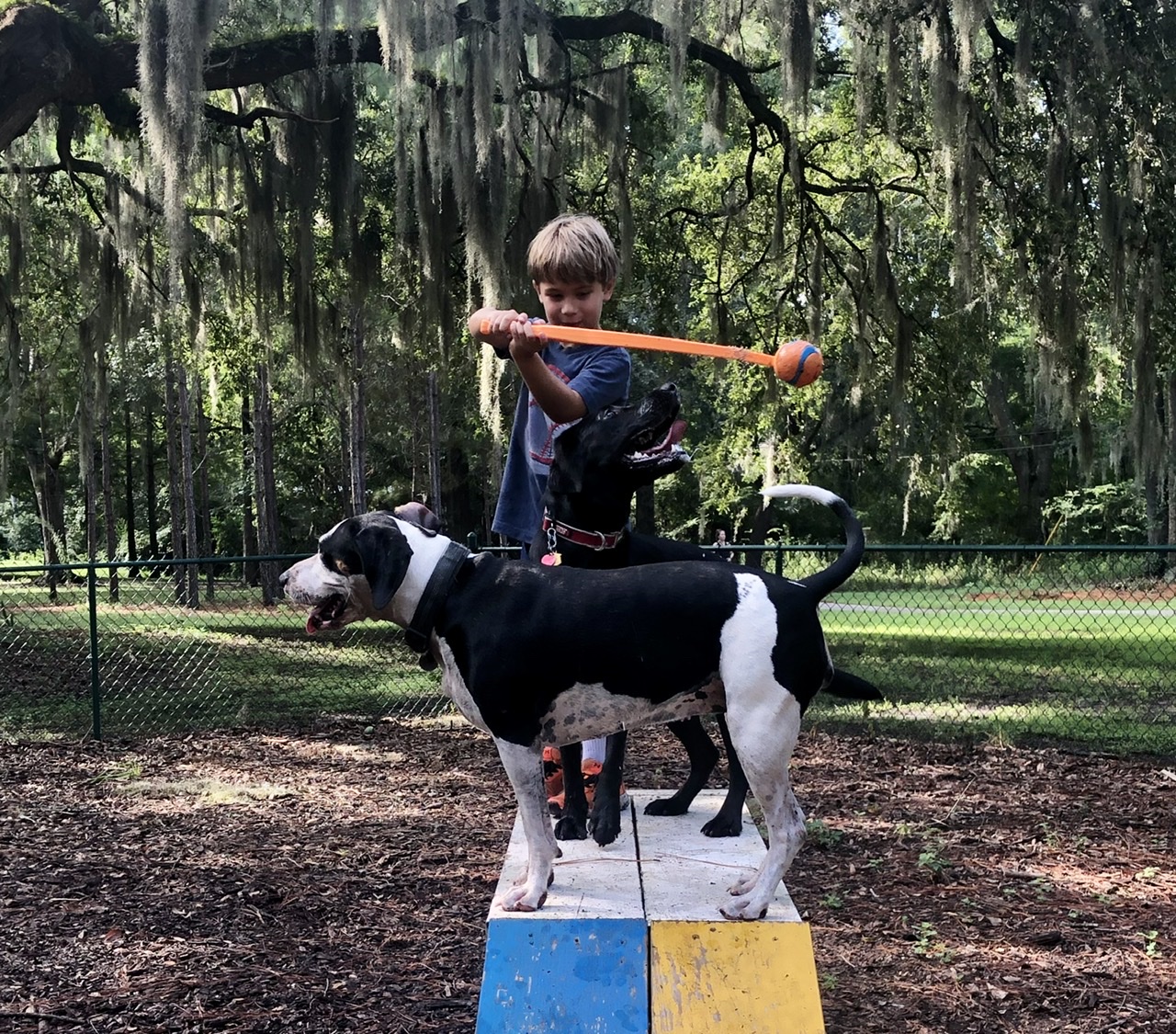 Dylan knows how to have fun at the dog park just like those young whipper snappers. What a sweet boy.