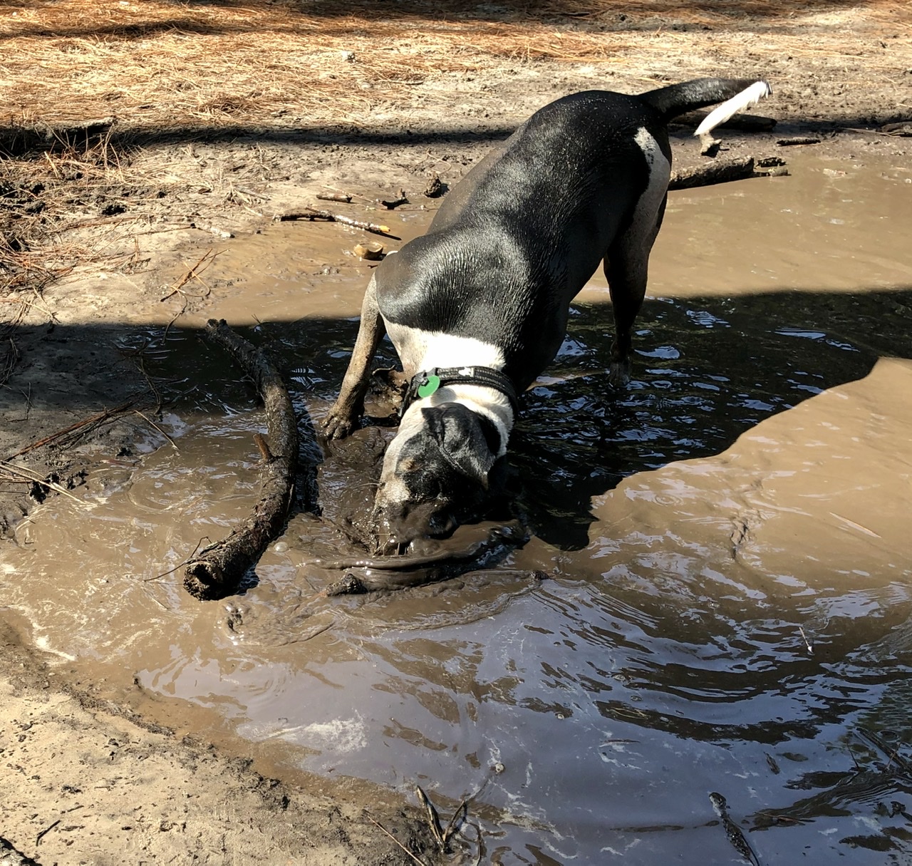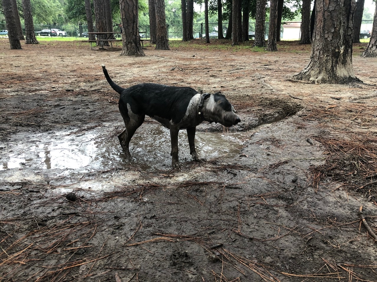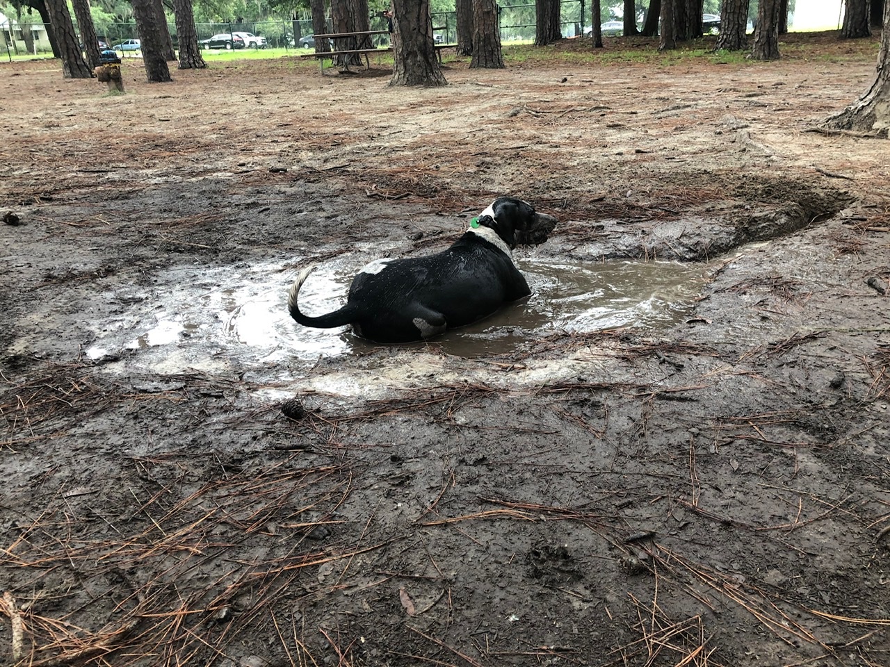 Dylan and Dora head to the dog park each morning where Dora searches for the muddiest puddle she can find.