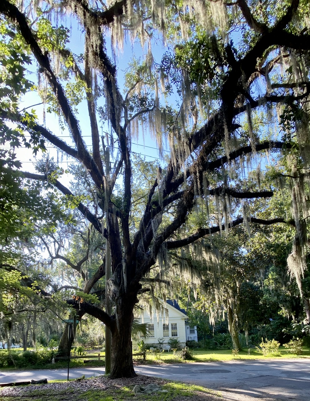 The streets are canopied by massive old oak and cedar trees covered in Spanish moss. Magnolias and palms are interspersed. It’s a beautiful walk. We see squirrels and Dee Dee’s nemesis, two black cats, and even an occasional deer.