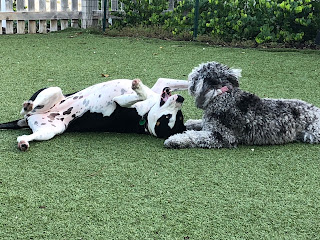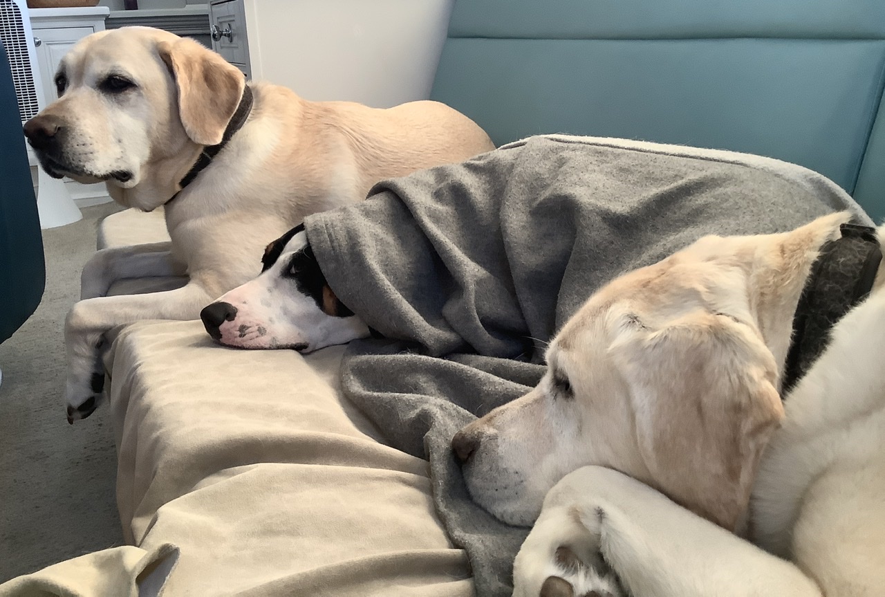 Dylan, Dee Dee, and Dora have been living with the changes caused by the Coronavirus. They are doing their part where they can but this “social distancing” thing has them a little confused. Are their “6 feet” calculated in the same way as “dog years”? Does that make a foot enough?