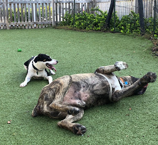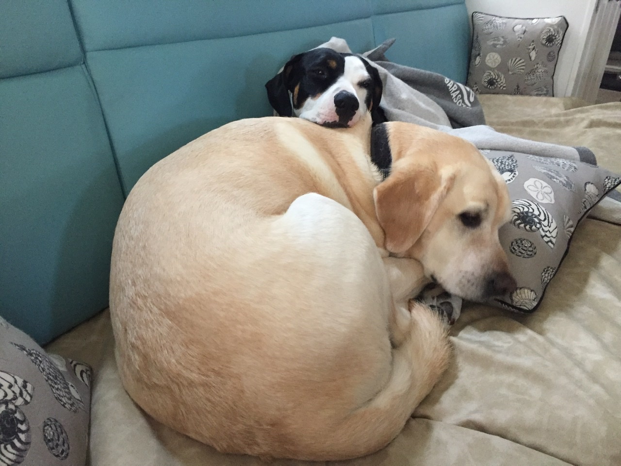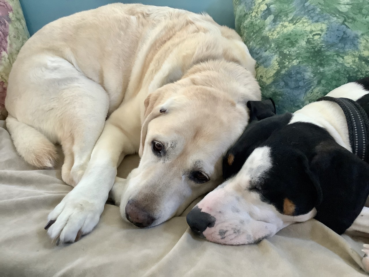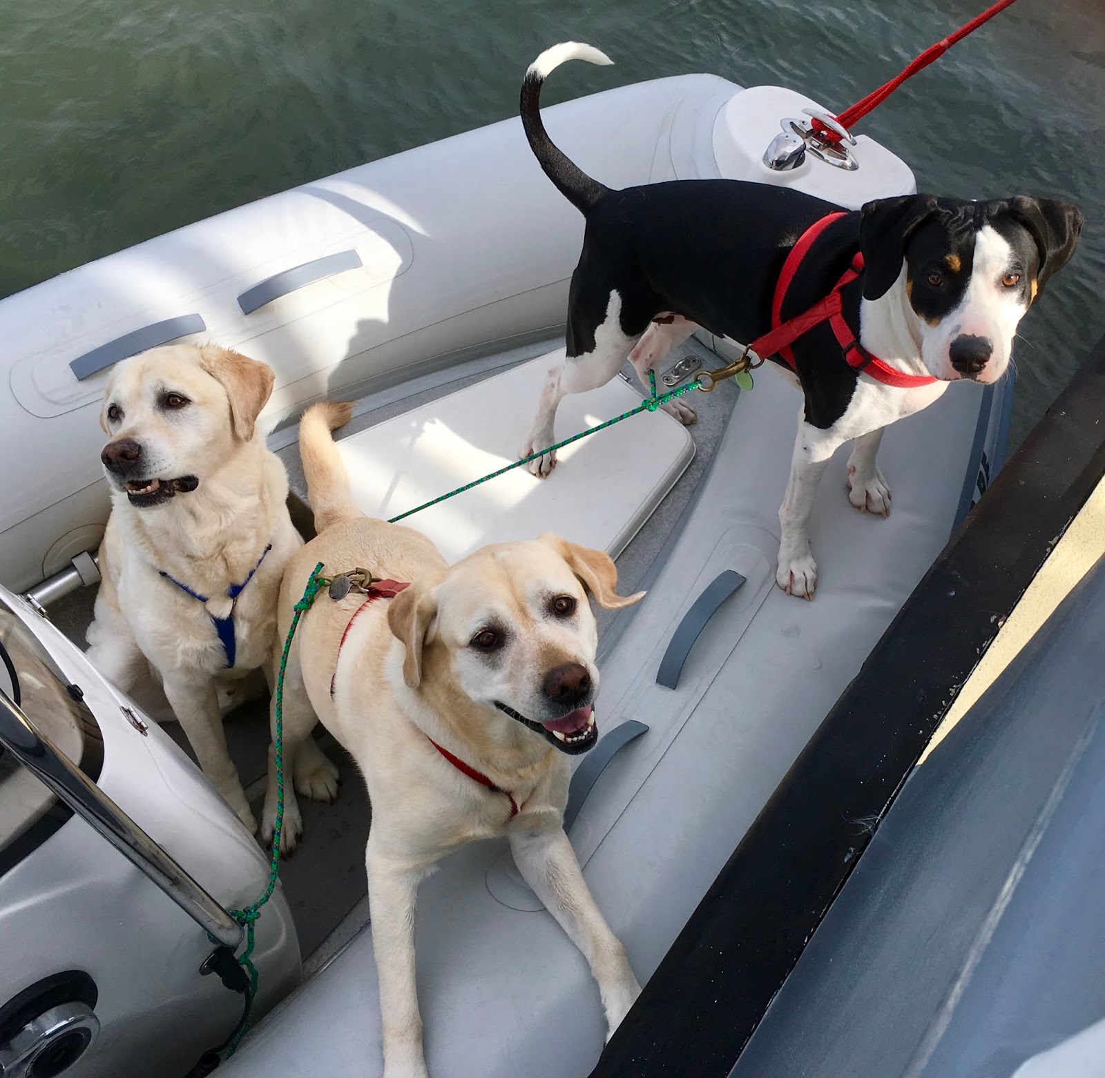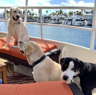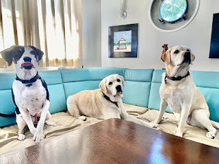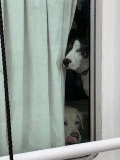 The crew’s schedule is unchanged – up at 6 am, breakfast, short nap, trip to the dog park and a walk, spending the rest of the day guarding against pirates (plus a few more naps), supper, and then cuddle time with a Mom and Dad until bedtime.