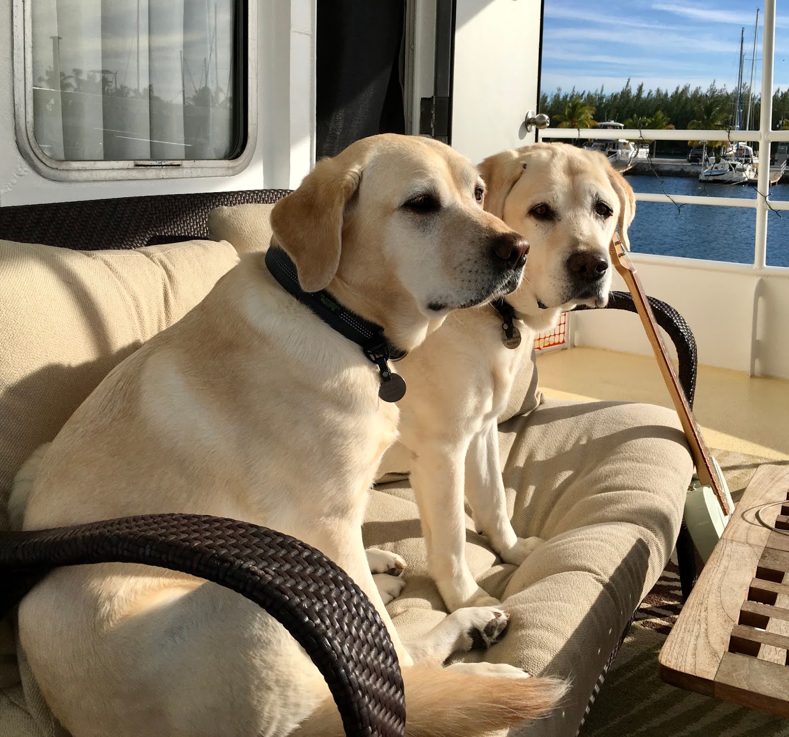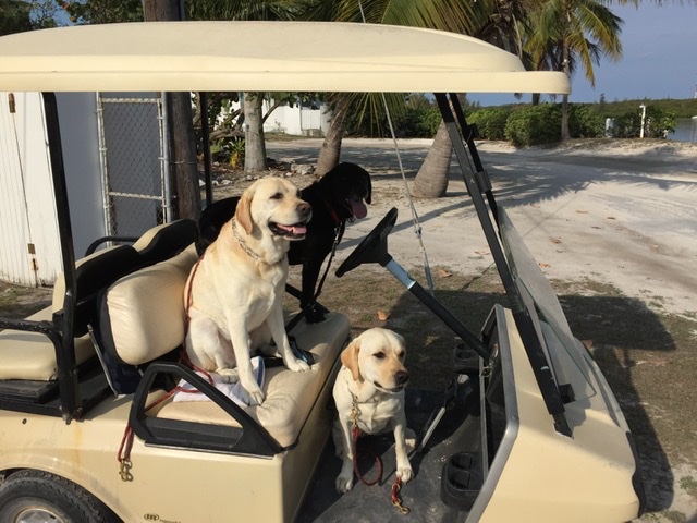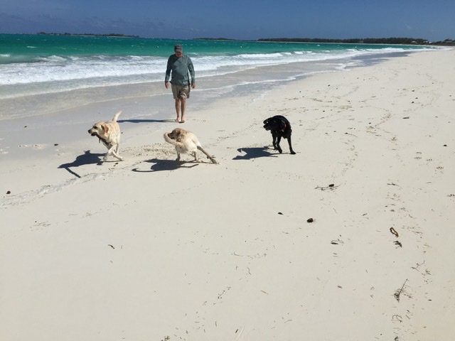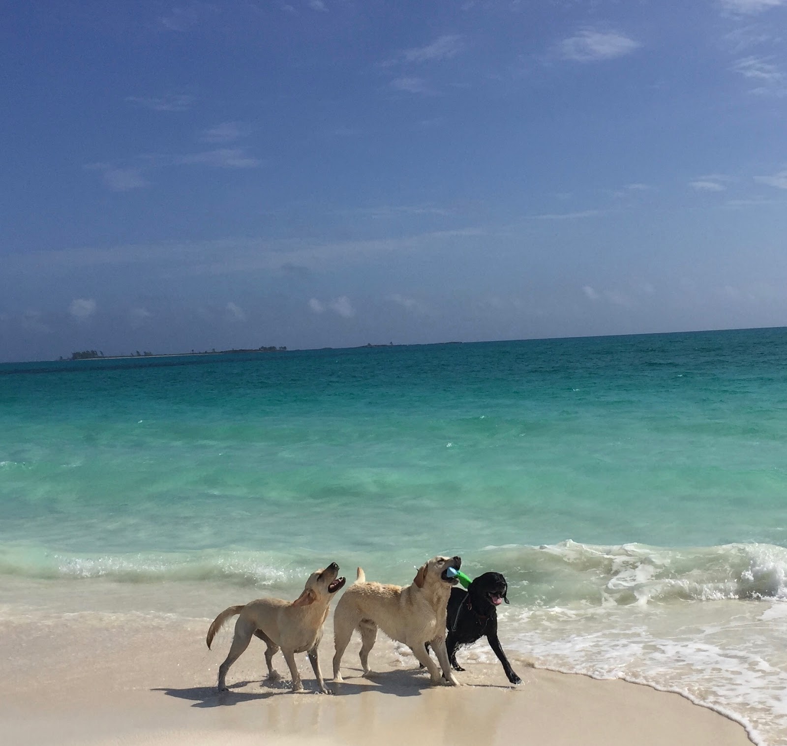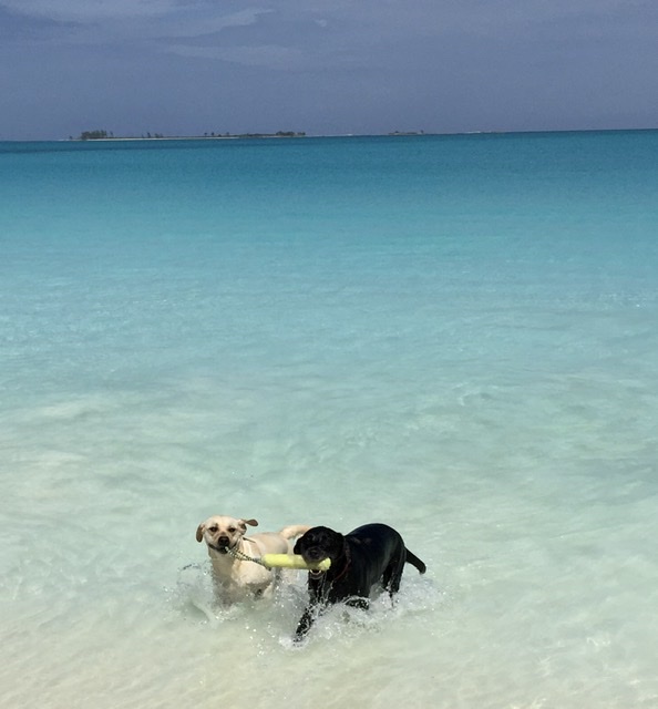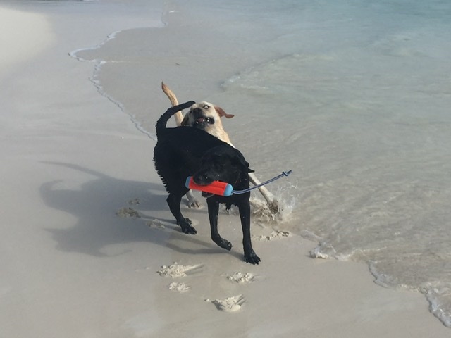 Even the most casual follower of TakingPaws will have seen many pictures of Gracie and the crew romping on the beaches of the Bahamas. Dylan, Dee Dee, and Gracie have spent countless hours swimming after the bumper, taking dingy rides, and gazing at each other across the bow. They were quickly dubbed “The Three Amigos.” There have never been better buddies.