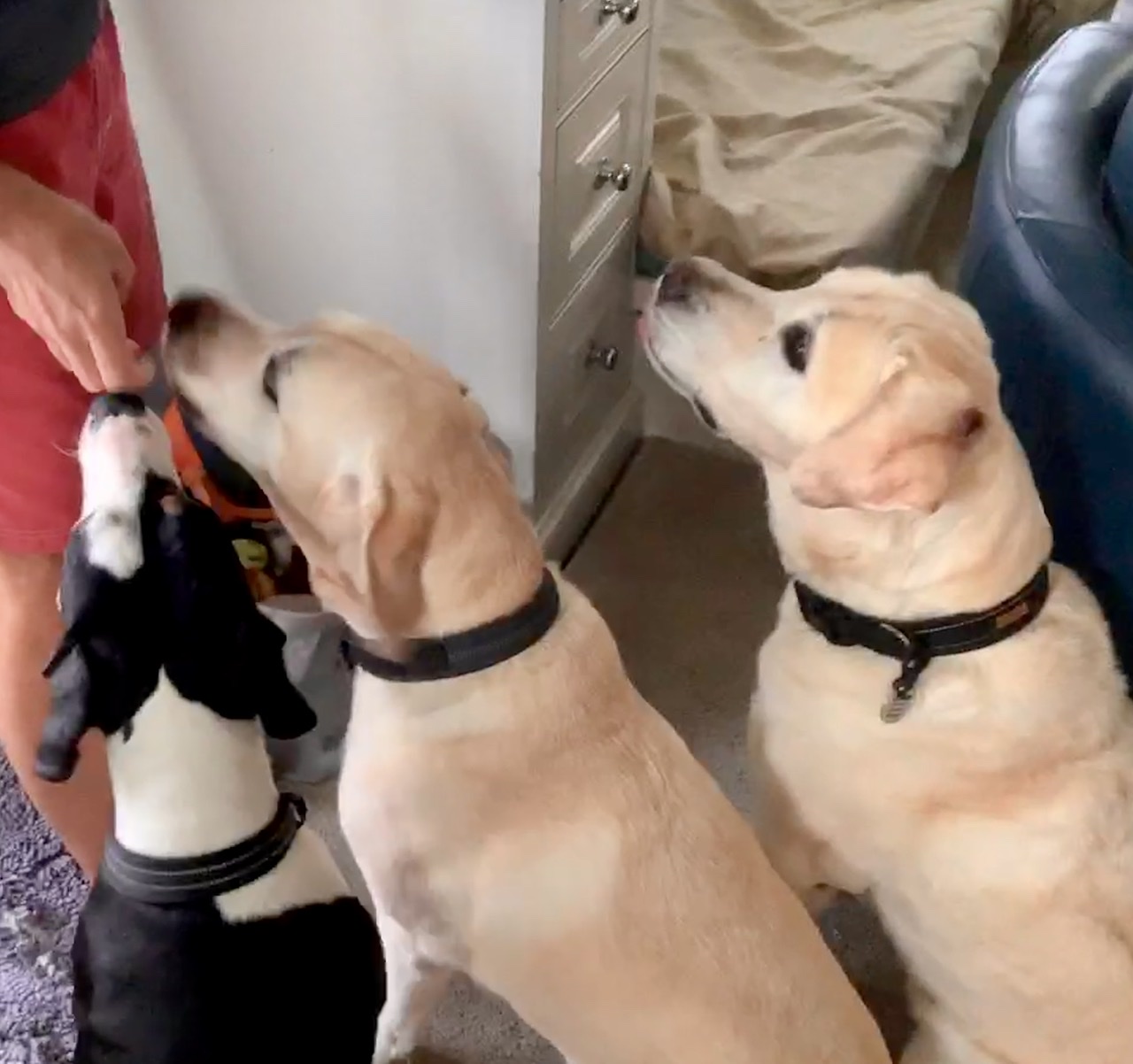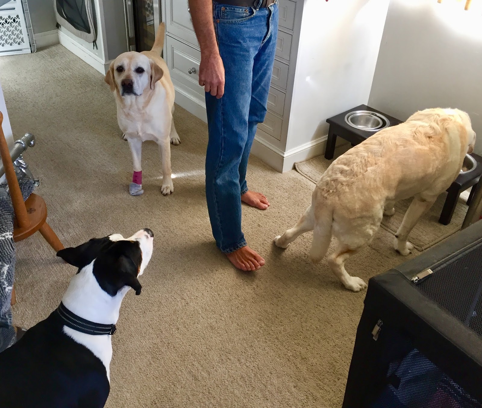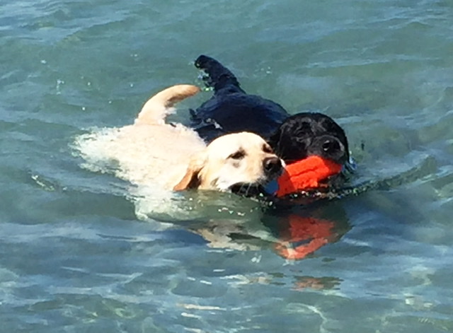 Even the most casual follower of TakingPaws will have seen many pictures of Gracie and the crew romping on the beaches of the Bahamas. Dylan, Dee Dee, and Gracie have spent countless hours swimming after the bumper, taking dingy rides, and gazing at each other across the bow. They were quickly dubbed “The Three Amigos.” There have never been better buddies.