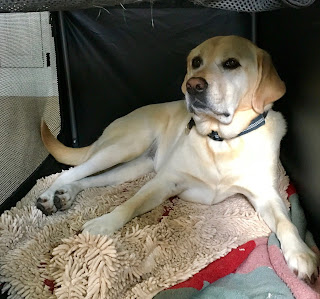 The crew left early this morning for their trip to Castine, Maine. Dylan, Dee Dee, and Dora use a lot of space when underway. But everyone managed to find a spot in the back seat.