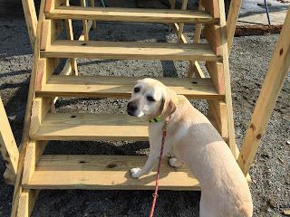 Three days on the hard meant getting the crew off and on the boat. We used a series of ramps, much like Stewart a couple years ago. Tried airplane stairs but Dylan would have none of that. On the final day, we used a lift to take them off one at a time prior to Red Head going back in the water.