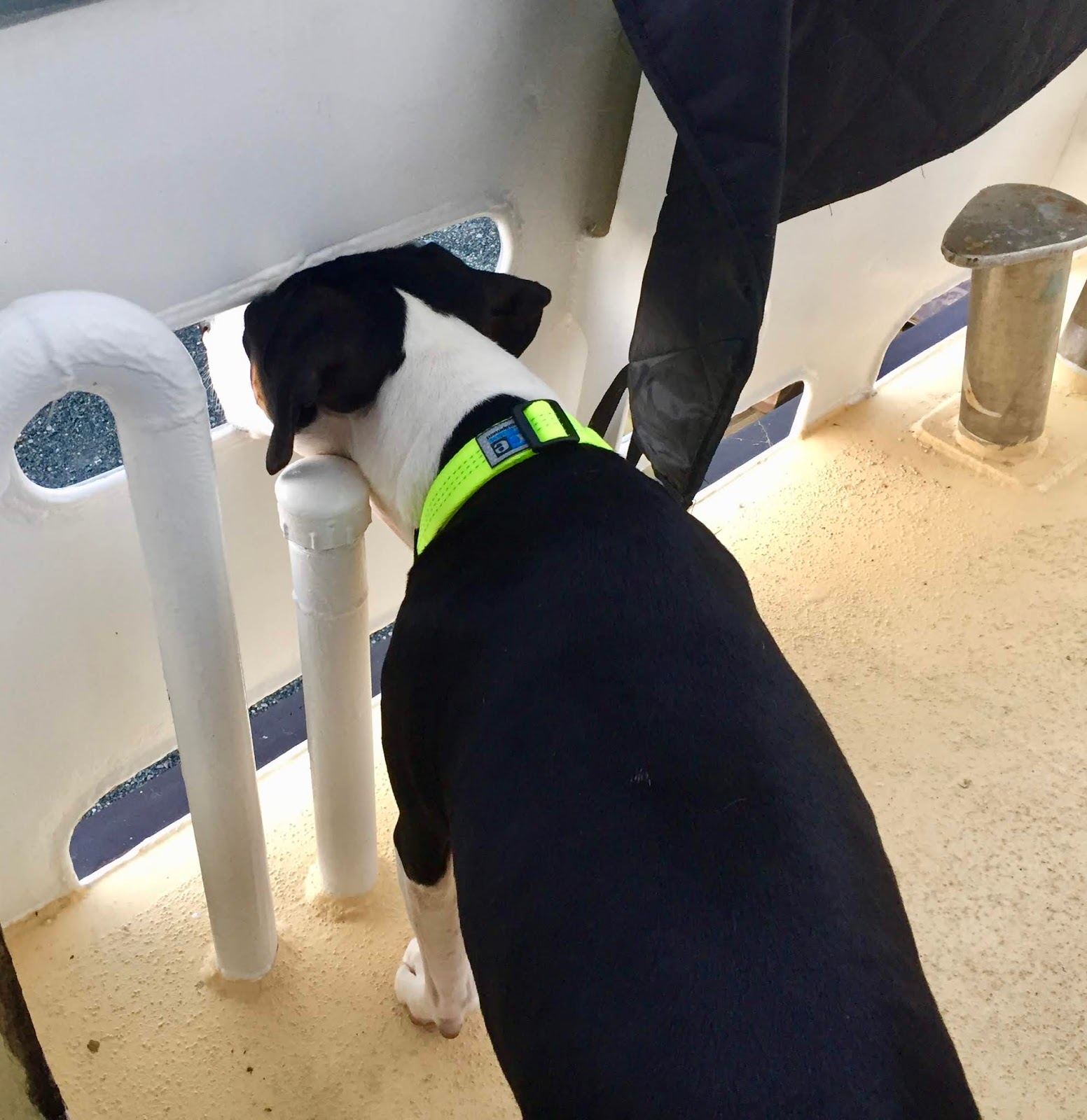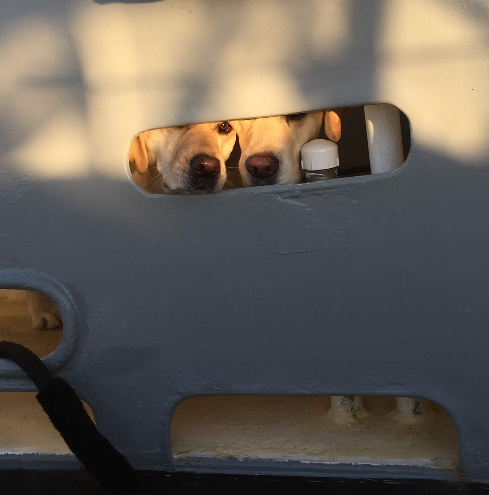 Dylan and Dee Dee discovered the small “window” outside the port galley door soon after moving onto Red Head. That pic was from October 2016 while at New Bern, NC.