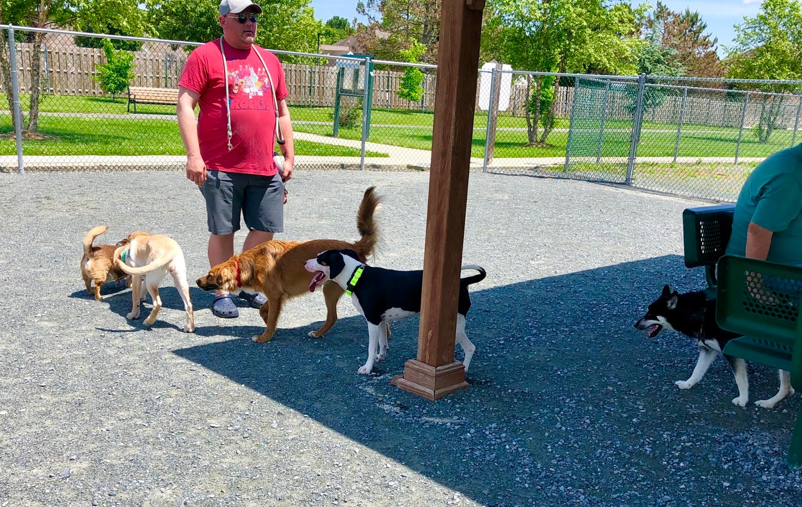 The first day here, Dylan, Dee Dee, and Dora walked to the Canton dog park. It’s a bit less than a mile each way. Dylan sat in the shade and then dragged most of the way back to the boat. Dee Dee was not behaving so her dad took her out for a walk.
