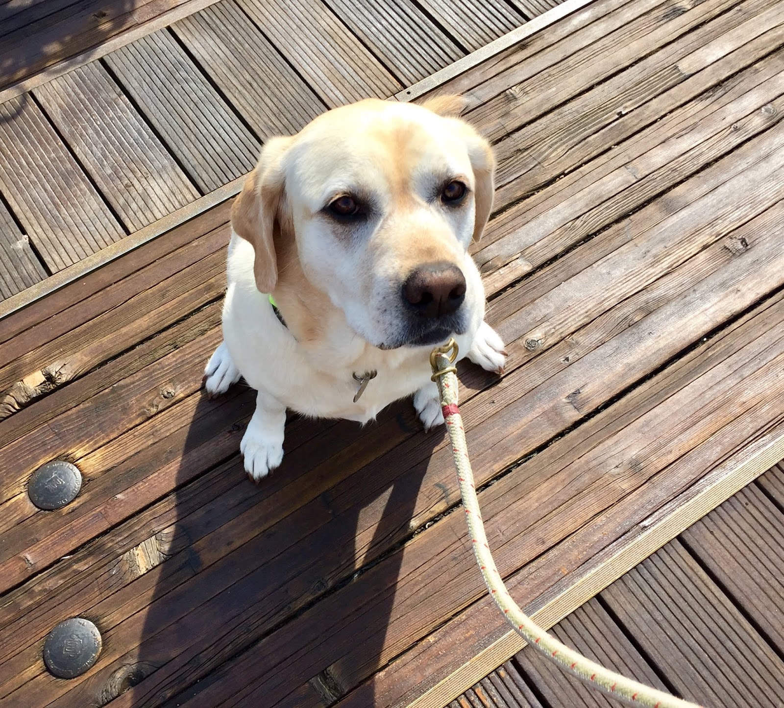 The new morning routine is as follows. Up (early) for breakfast, a bit of play time, and a snooze. Around 8 am, Mom takes Dylan for a walk on the waterfront promenade, before it gets hot. He loves sitting in the air conditioning when he returns.
