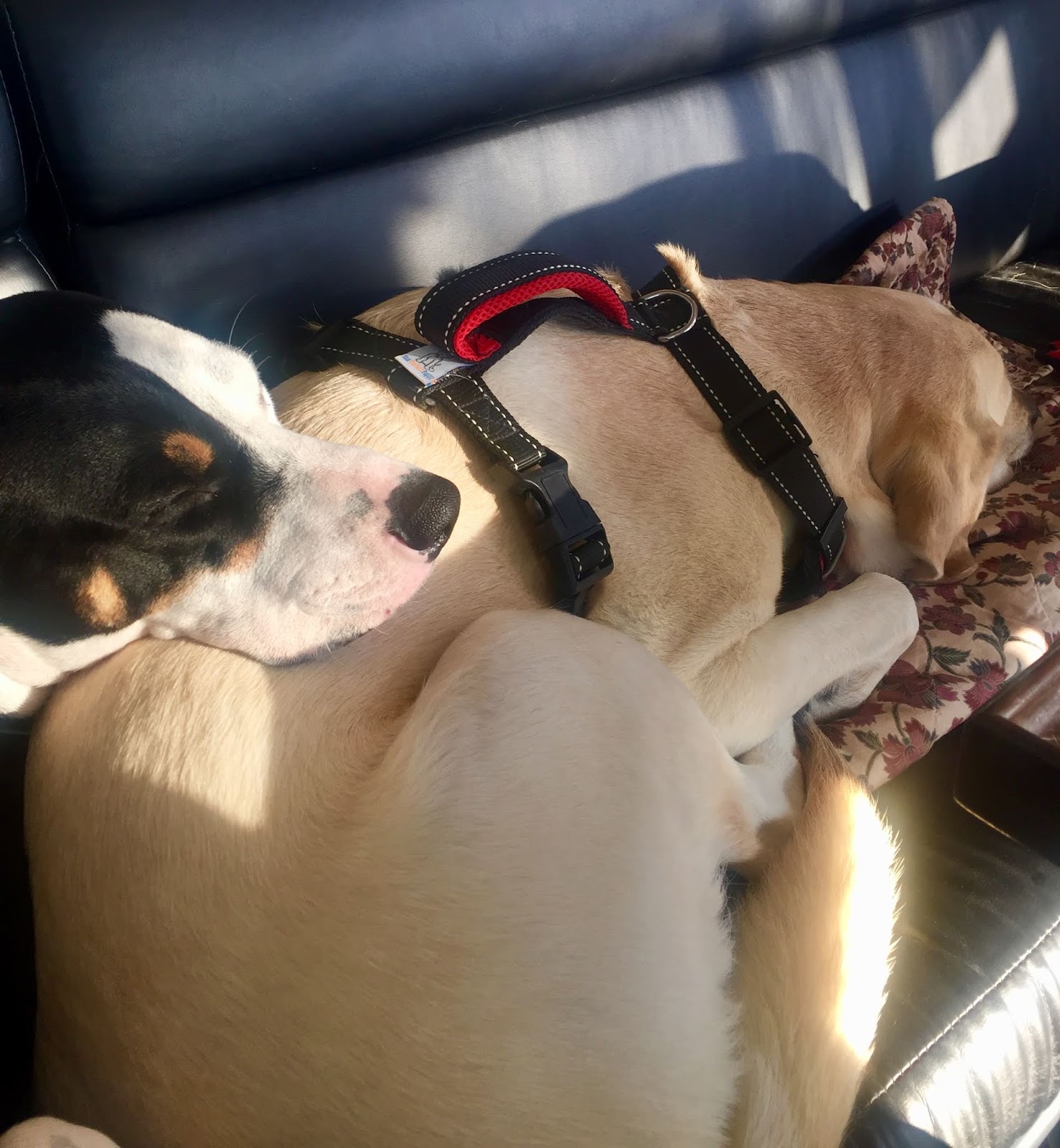 Each morning over her coffee, Mom checks her Weather Underground app to see what sort of day it will be. All she really needs to do is check the crew’s heat-o-meter. Dylan’s checks in first and is measured in “amount of paw dragging on the return.” He can pick up the most subtle changes.