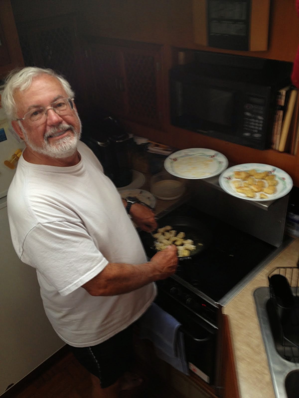 Our friend and crewmate, Don, was becoming quite skilled at spotting opportunities to acquire fresh fish right on our dock from locals who had braved the angry seas. First he scored some Hogfish (which Ken turned into a delicious meal), and before we knew it he showed up with a big bag of freshly cleaned Conch. Of course, it required a bit of pounding to tenderize it before Ken once again created a mouth-watering treat.