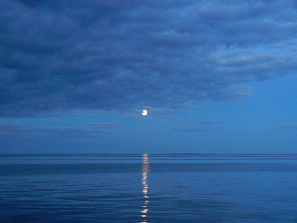 As we progressed further north into the evening and early morning on Tuesday the winds and seas decreased to the point where we riding on a beautiful calm sea. When I took 1 to 4 watch there was very little to do but enjoy the serenity of a moonlit night and listen to James Taylor. Most important, the marine forecasts for our route continued to predict optimum conditions.