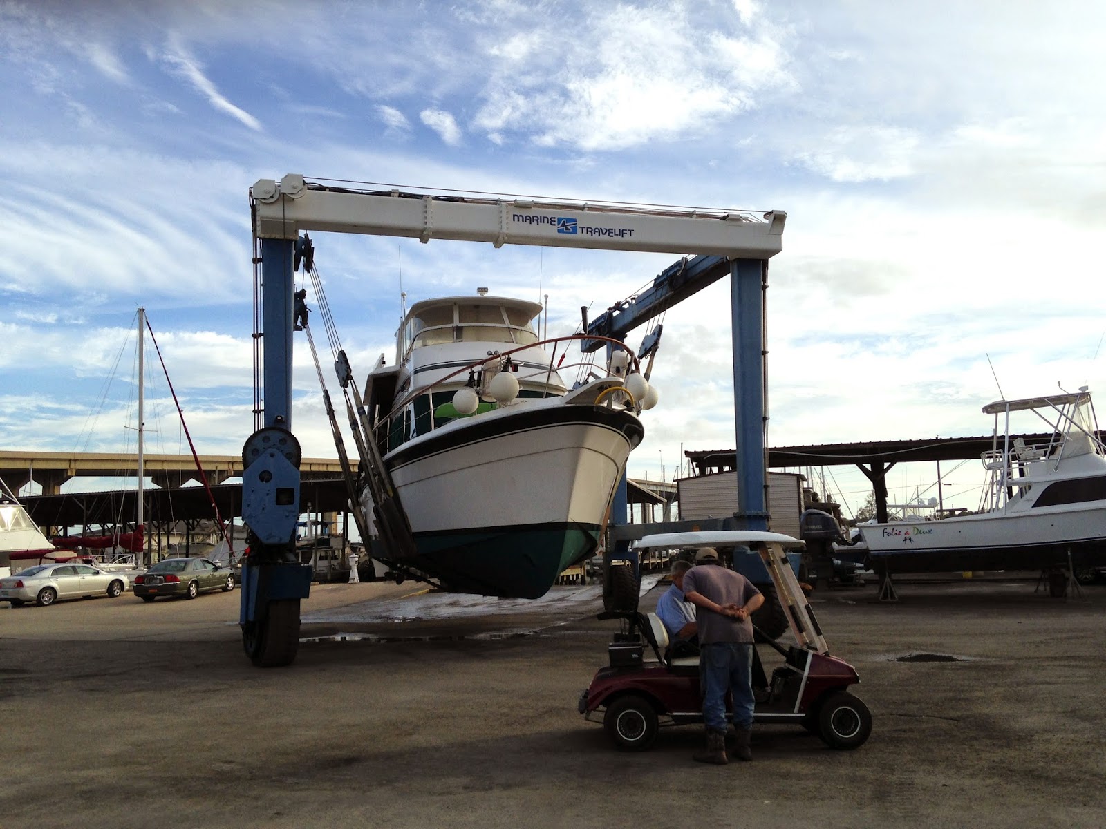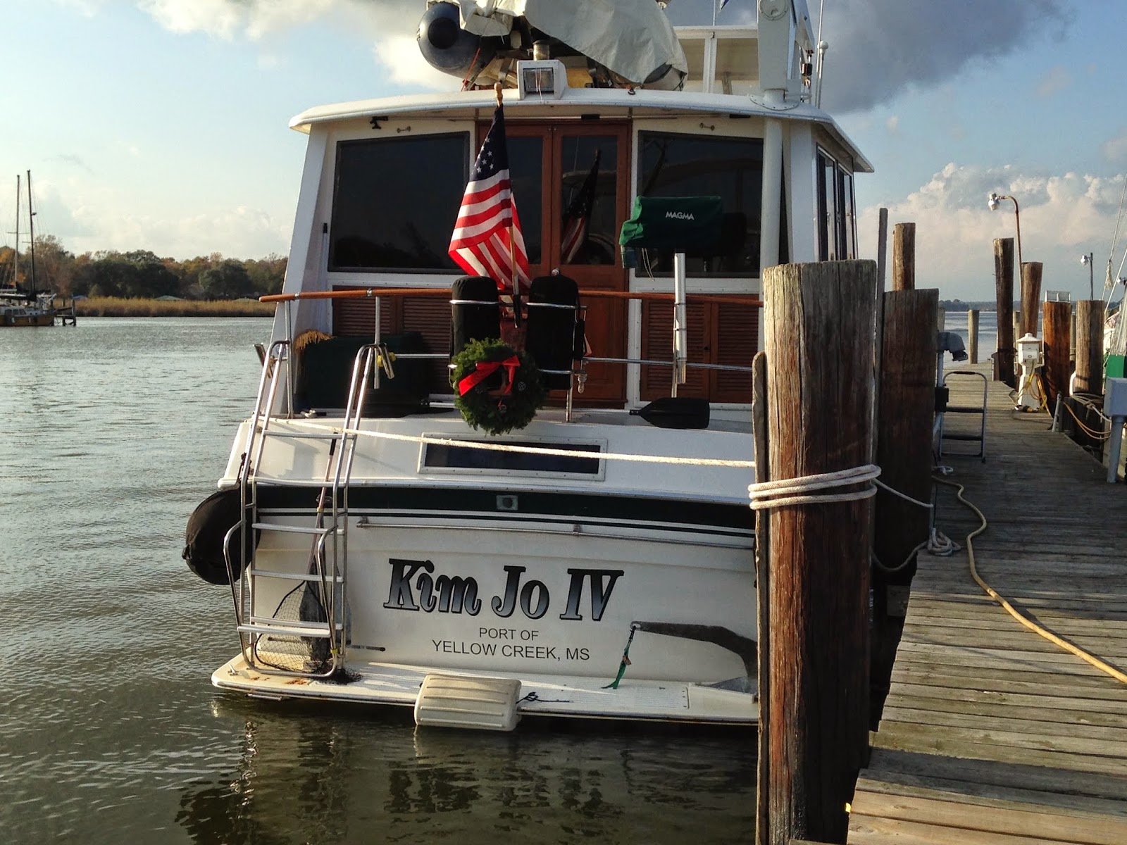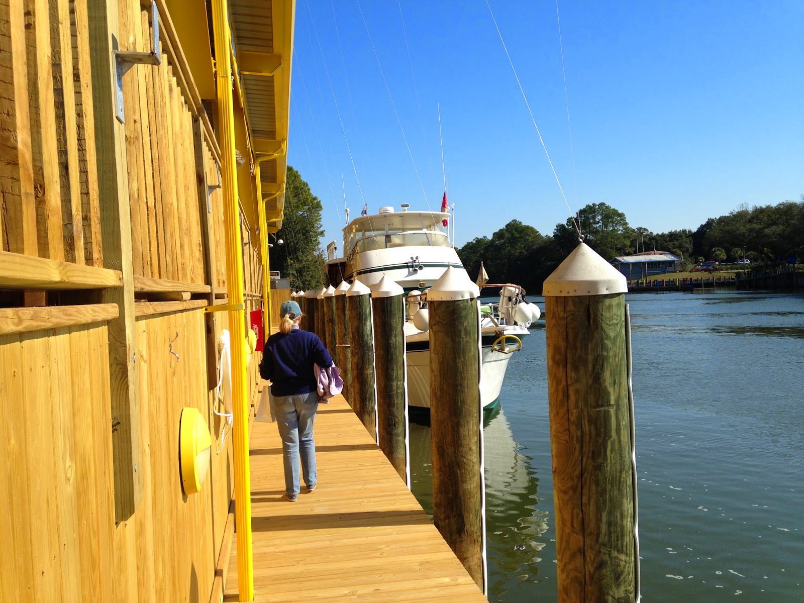 Saturday, December 13, 2014: It took a long time to bring the anchor up this morning. It was full of mud and took 20 minutes to bring it up. We got going about 07:35. Love this part of the trip as we see lots of dolphins. Got some good video of them jumping our wake but I can’t get the video to work on the blog.. We got to our tie up at Fort Walton Beach Free City dock by 13:30. Had a quick lunch and went to Public’s to pick up a few groceries. The city had their Christmas Boat parade tonight so we got to watch another one; tis the season.